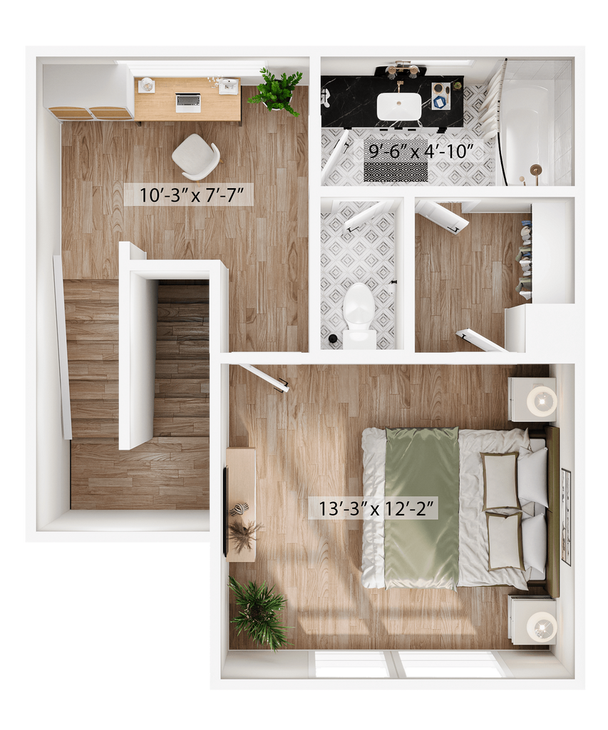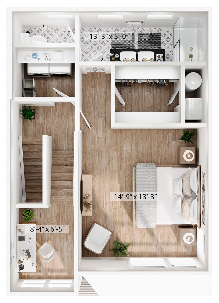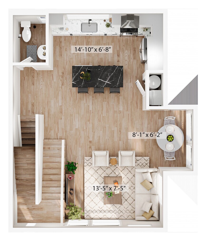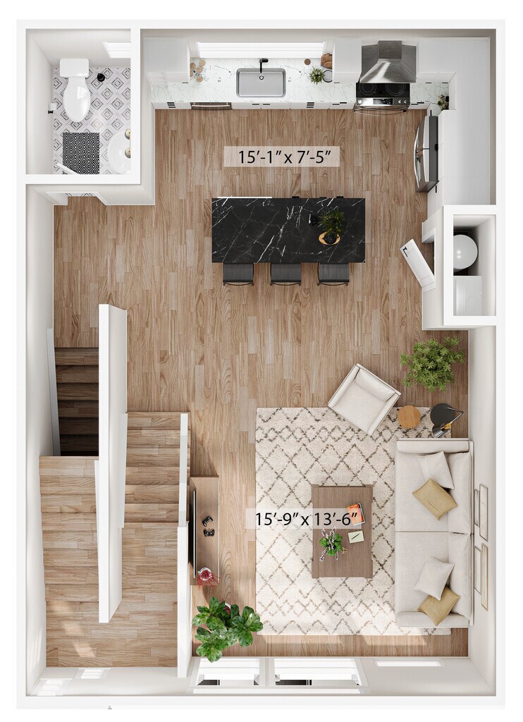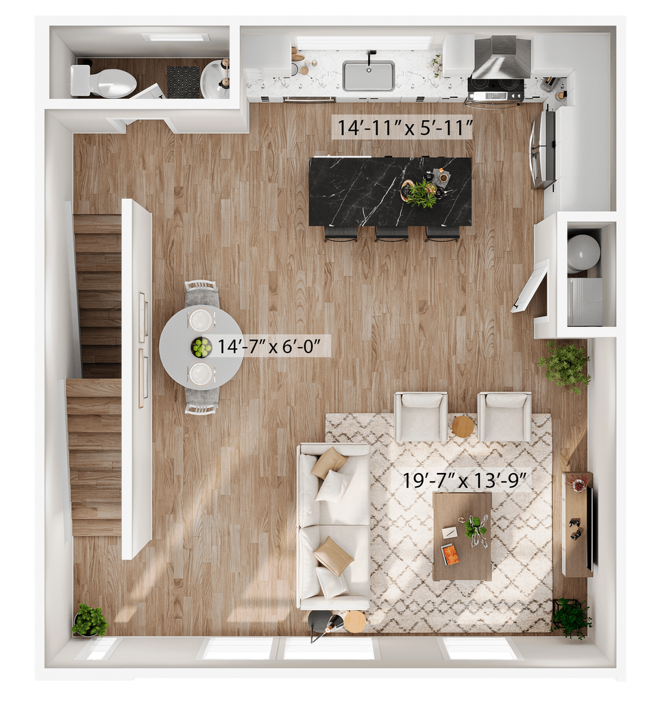1 Dormitorio, 1.5 Baños, 1315 pies²Disponible AhoraGalería del Modelo