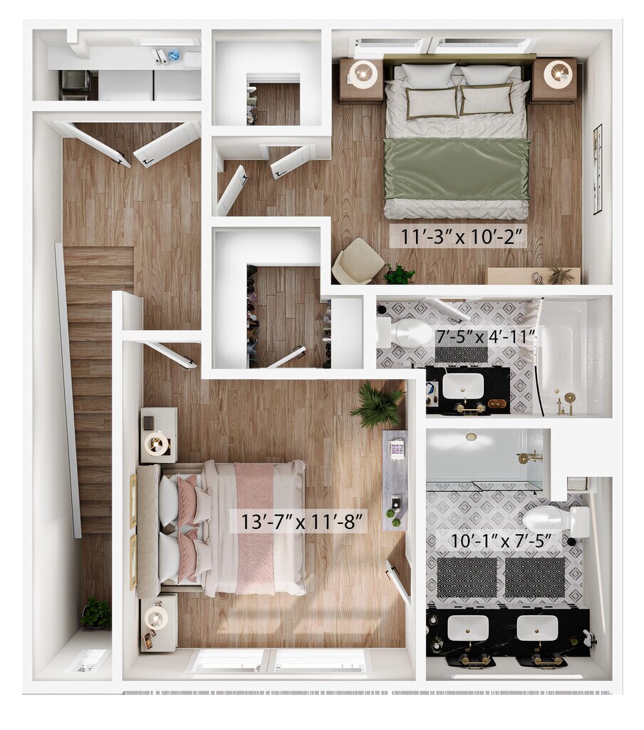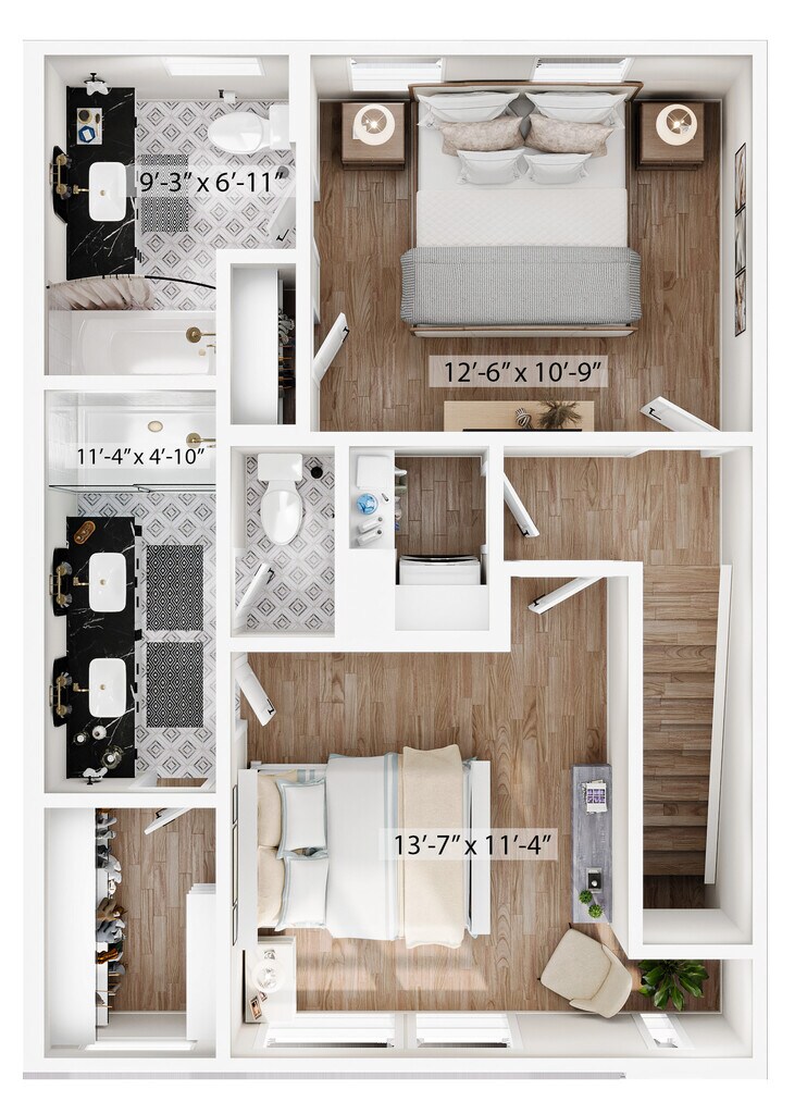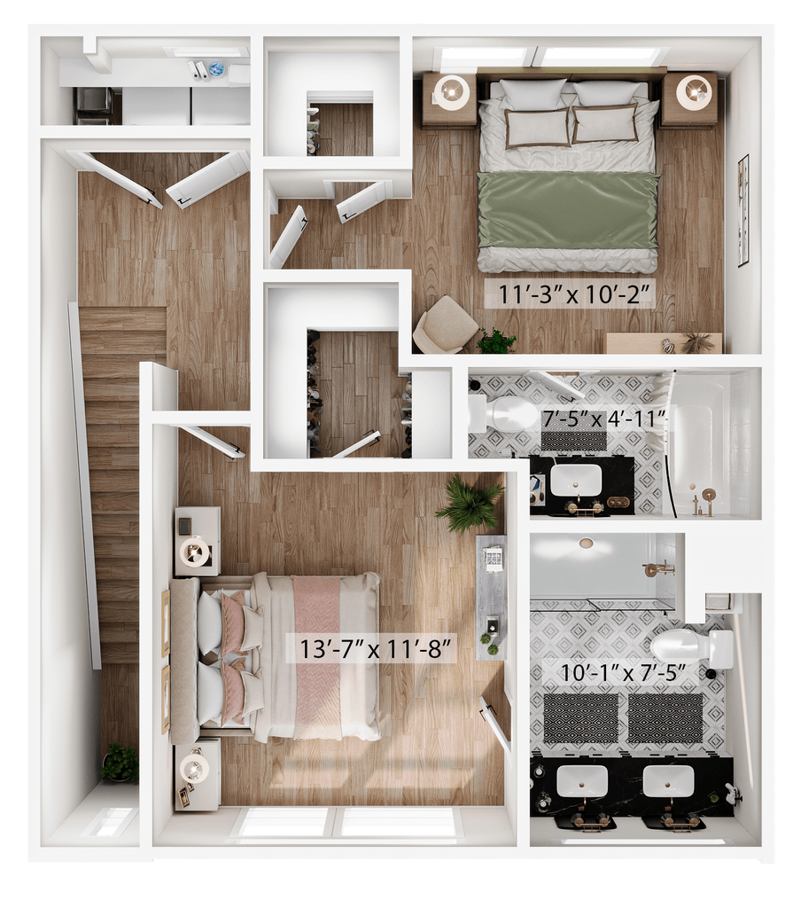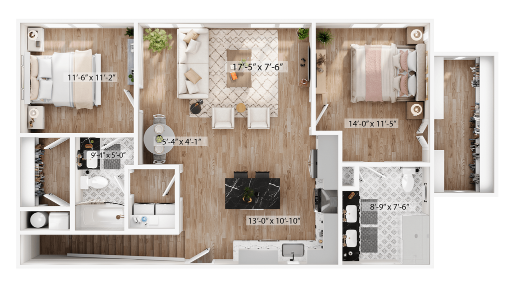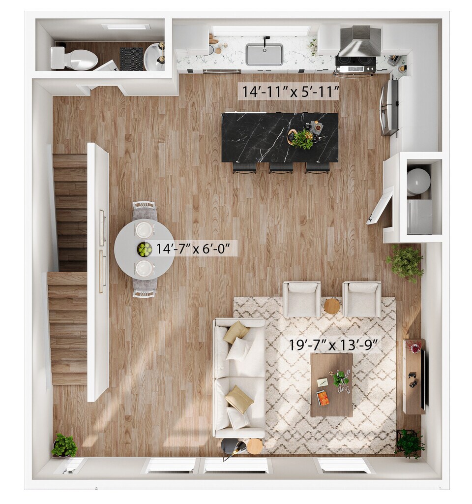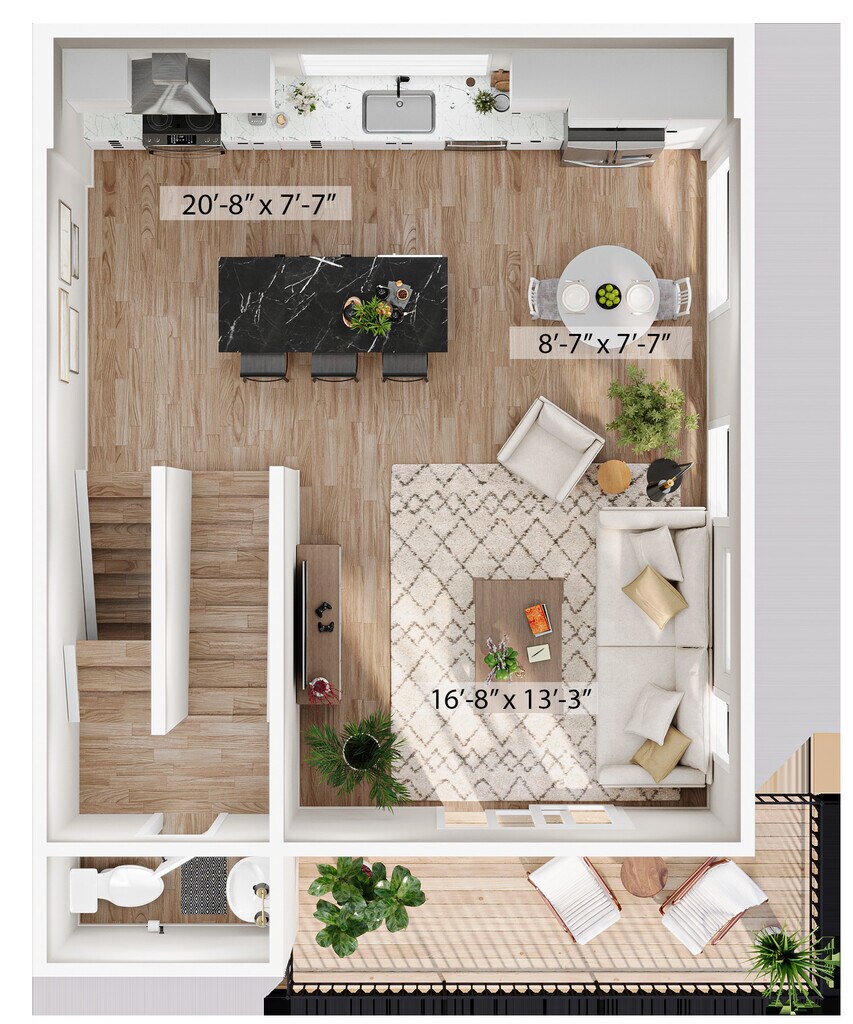 1 Dormitorio, 1.5 Baños, 1315 pies²Disponible AhoraGalería del Modelo
