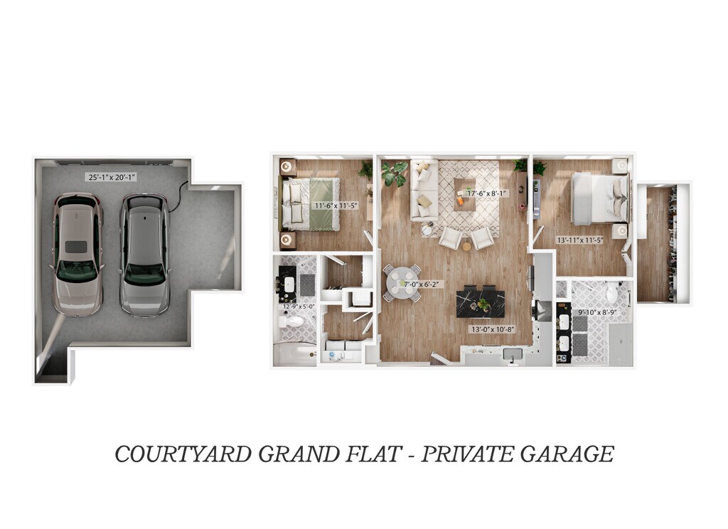 Courtyard Grand Flat - Private Garage - Plano 6 Unidad de apartamento: 30Modelo de apartamento: Courtyard Grand Flat - Private Garage$2,5992 Dormitorios, 2 Baños, 1225 sq ftDisponible AhoraCourtyard Flat - Attached Private Garage