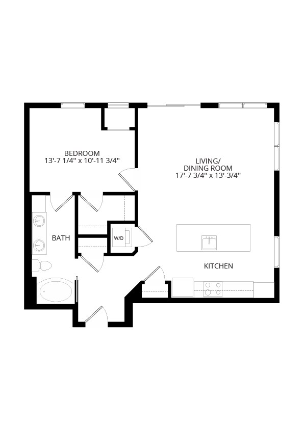 1 Dormitorio, 1 Baño, 695-711 pies²Galería del Modelo