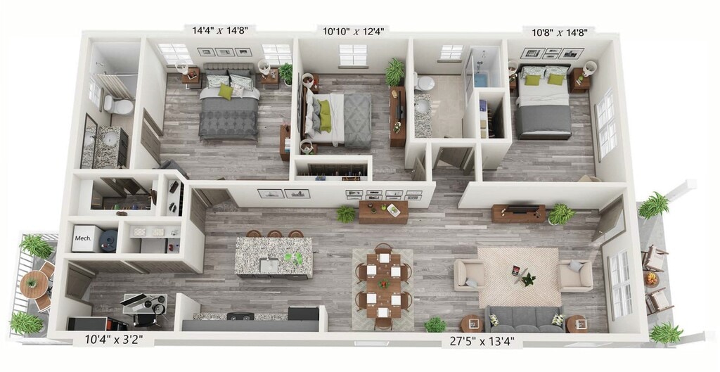 Modelo de apartamento: ACA3E$2,7993 Dormitorios, 2 Baños, 1307 sq ftDisponible Ahora![]()
