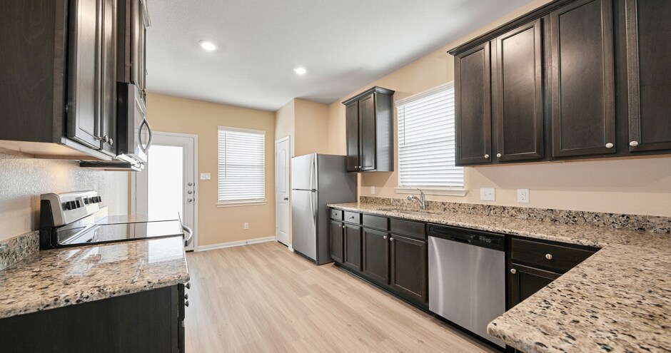 Estos apartamentos listos para la mudanza cuentan 3 a 4 habitaciones, 2 baños, vestidores grandes y cocinas de chef listas con encimeras de granito y todos los electrodomésticos. Desde la increíble entrada hasta el parque estupendo, Bauer Landing es un lugar maravilloso para llamar hogar. ¡Este complejo incluye senderos para caminar, un lago para pescar y una reserva natural de 50 acres, y con cercanía al nuevo Grand Parkway, viajar a cualquier lugar de la ciudad es un placer! El mobiliario que se ve en la fotografía del hogar es para fines de muestra y no está incluido en el hogar.