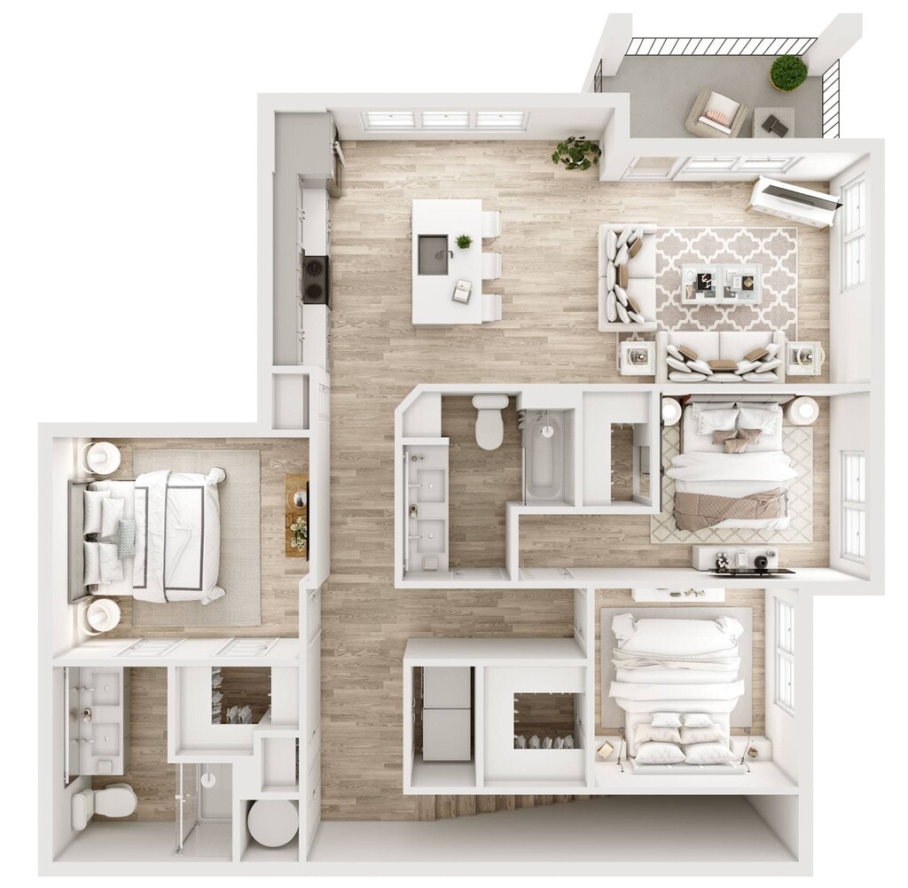 Modelo de apartamento: A2 1 Bed / 1 Bath Desde $1,1321 Dormitorio, 1 Baño, 863 sq ftDisponible November 25, 2025![]()