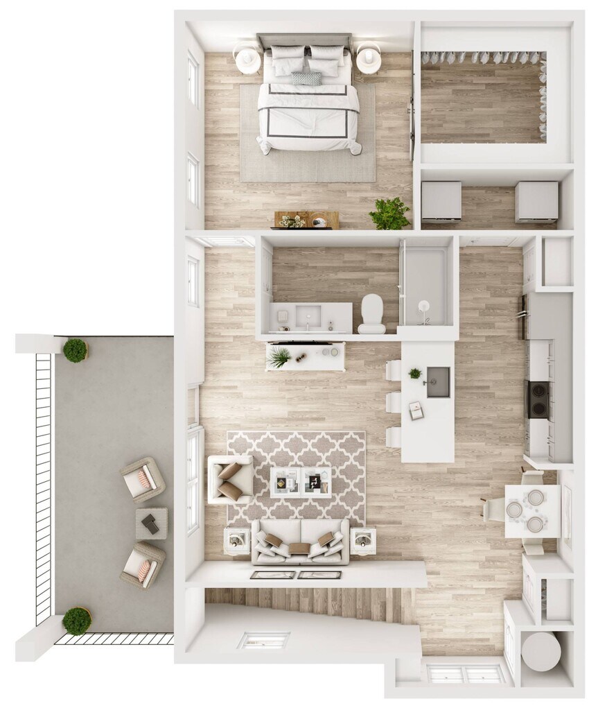 Modelo de apartamento: A0 1 Bed / 1 BathDesde $937Estudio, 1 Baño, 670 sq ftDisponible November 26, 2025![]()