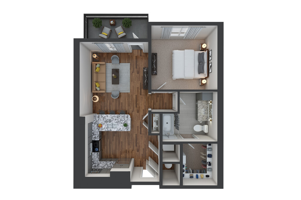 1 Dormitorio, 1 Baño, 895 pies²Disponible AhoraGalería del Modelo