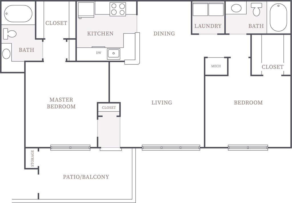 2 Dormitorios, 2 Baños, 1227 pies²Disponible AhoraEl más grandeEsta opción tiene las unidades más grandes para este modeloGalería del Modelo