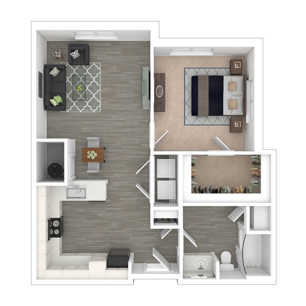 1 Dormitorio, 1 Baño, 781 pies²Disponible AhoraEl más grandeEsta opción tiene las unidades más grandes para este modeloGalería del Modelo