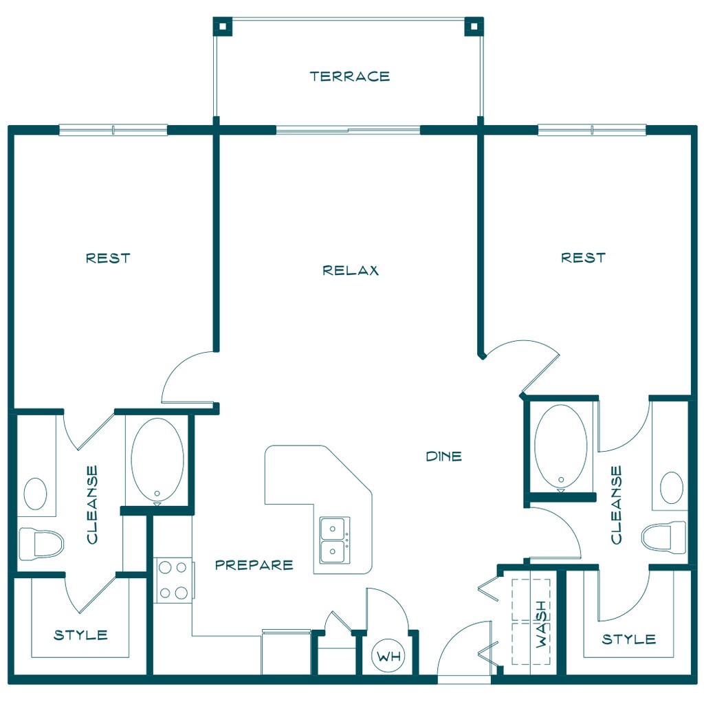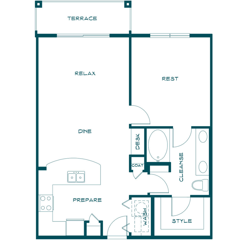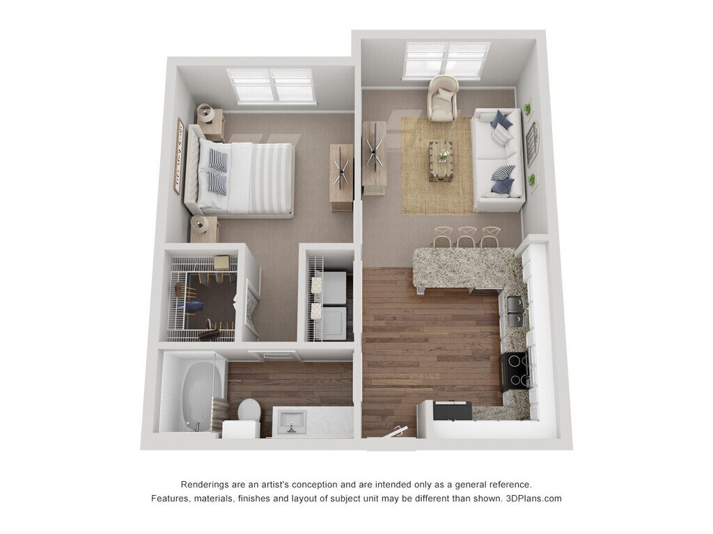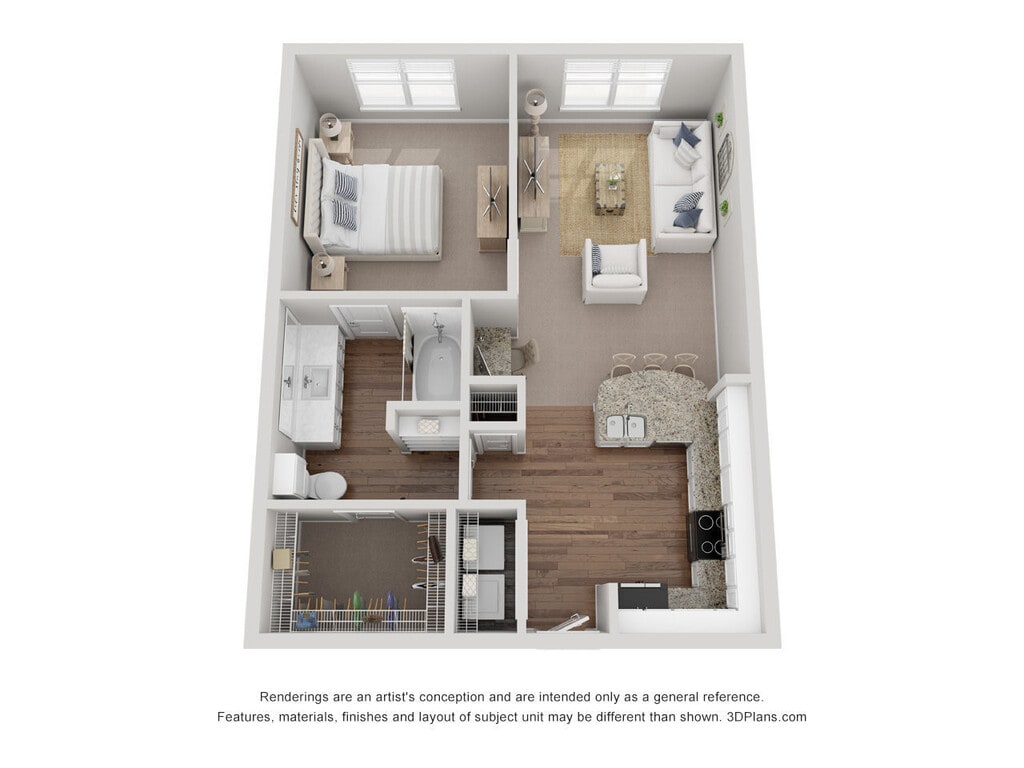 1 Dormitorio, 1 Baño, 740-755 pies²Disponible AhoraGalería del Modelo