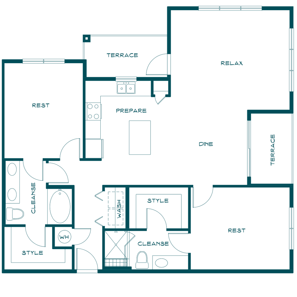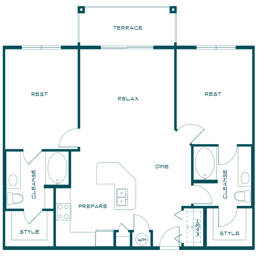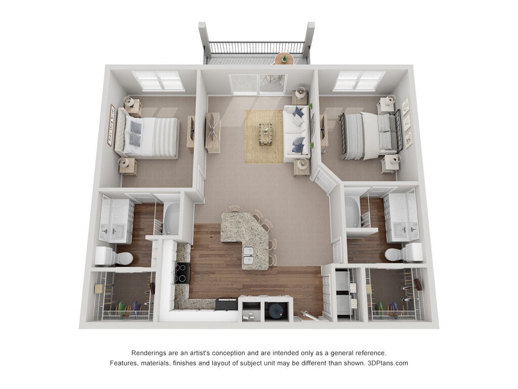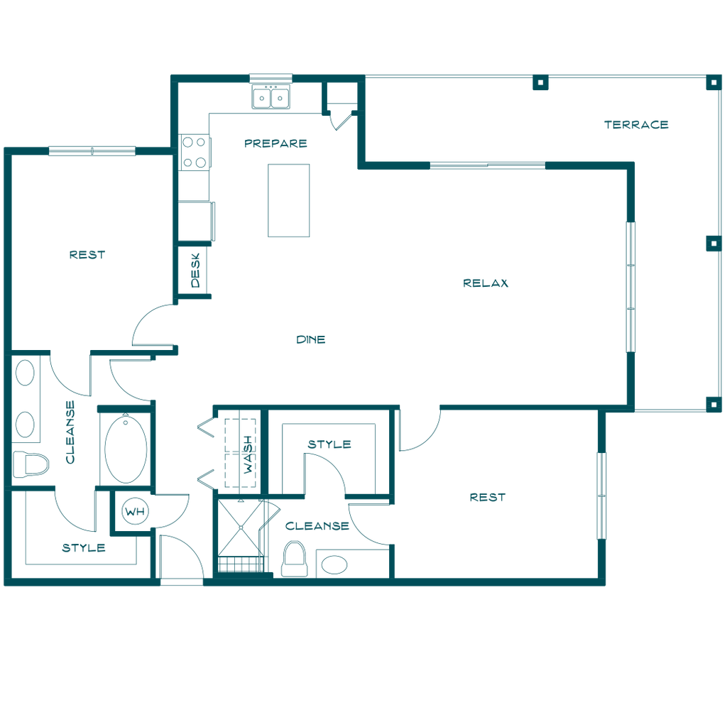 1 Dormitorio, 1 Baño, 740-755 pies²Disponible AhoraGalería del Modelo