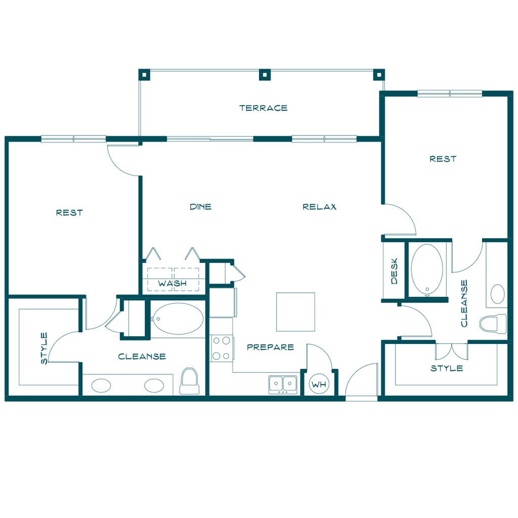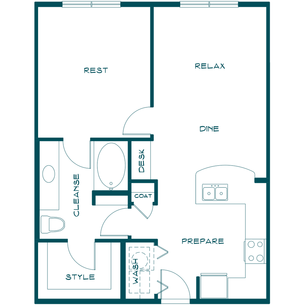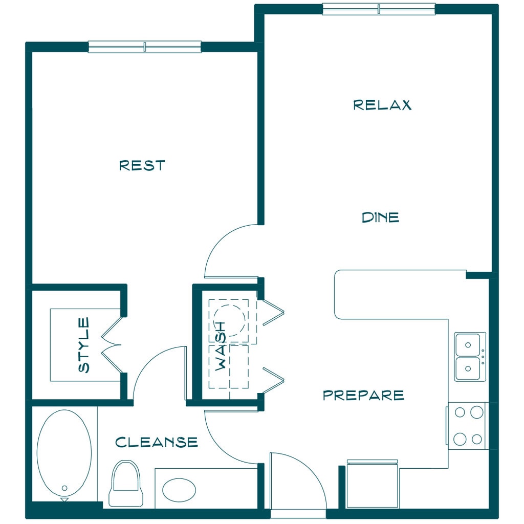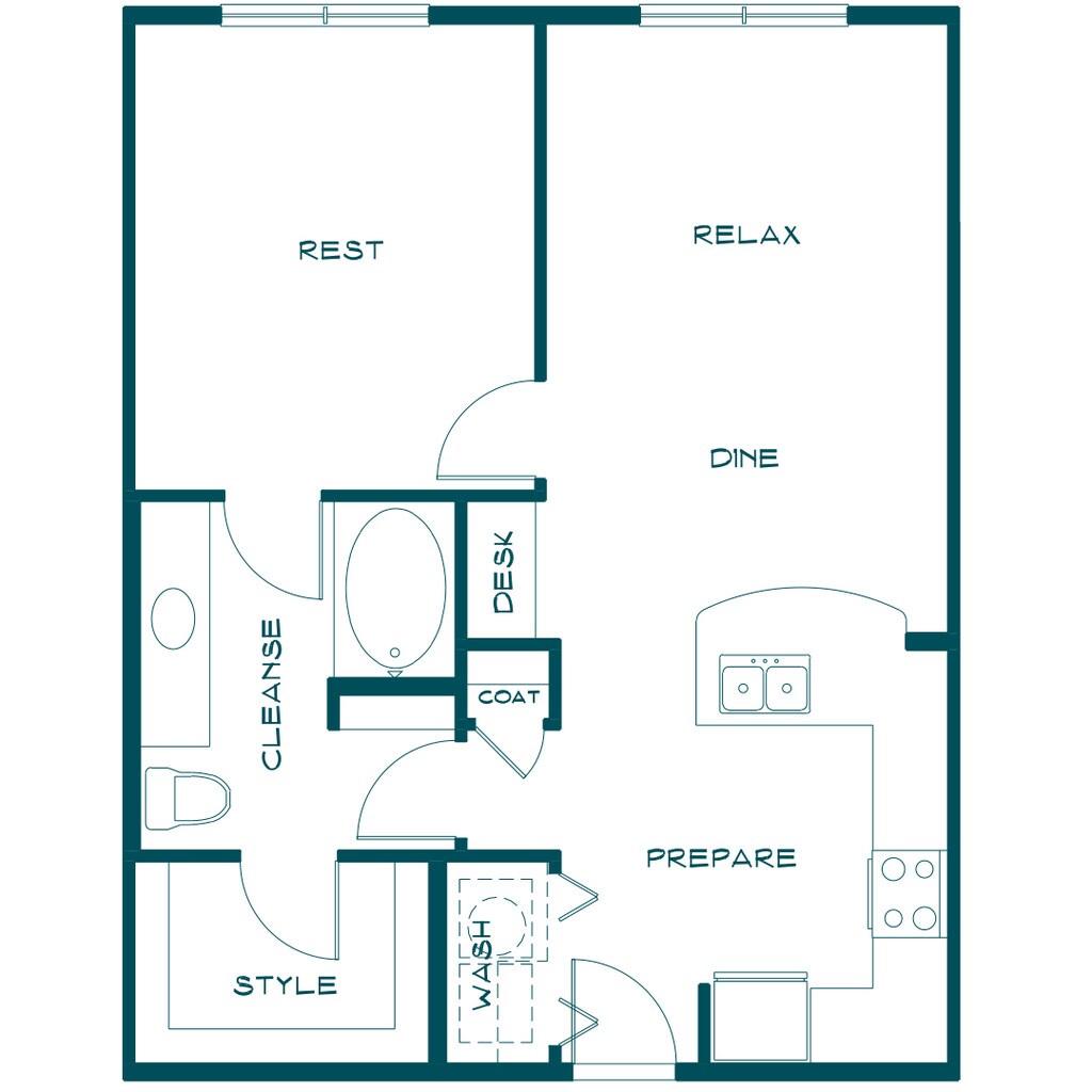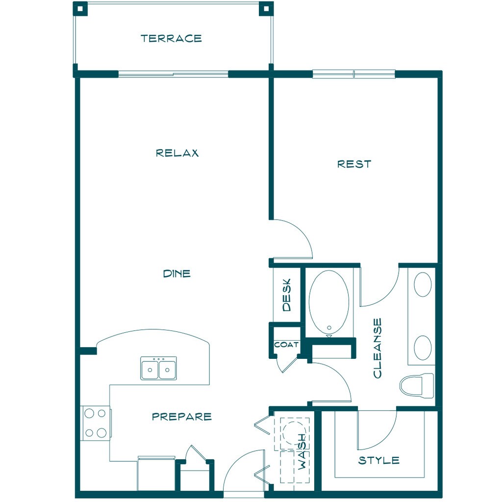 Modelo de apartamento: ADesde $1,2051 Dormitorio, 1 Baño, 655-670 sq ftDisponible Ahora![]()