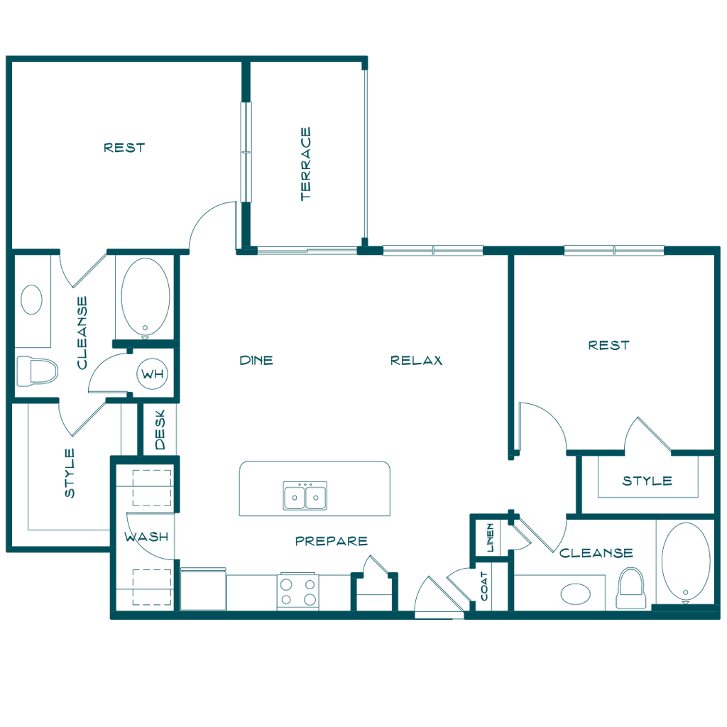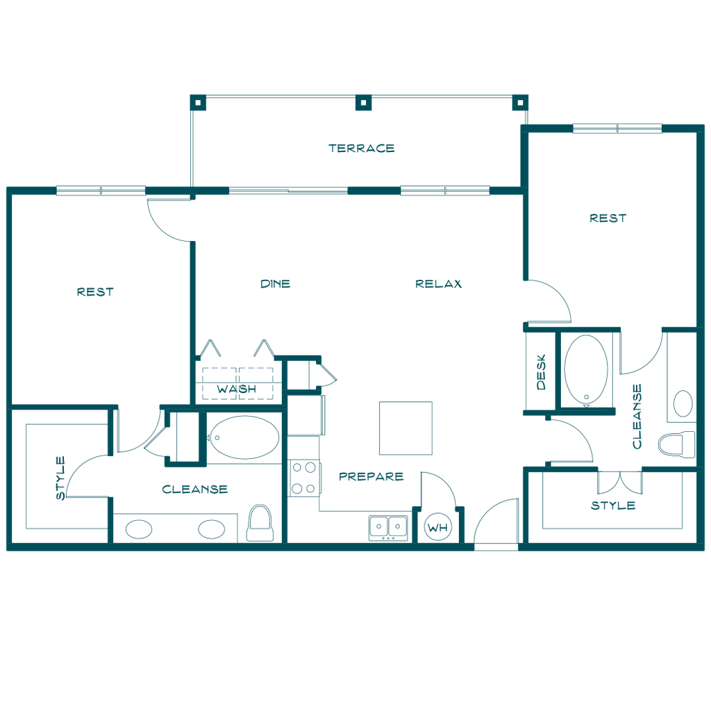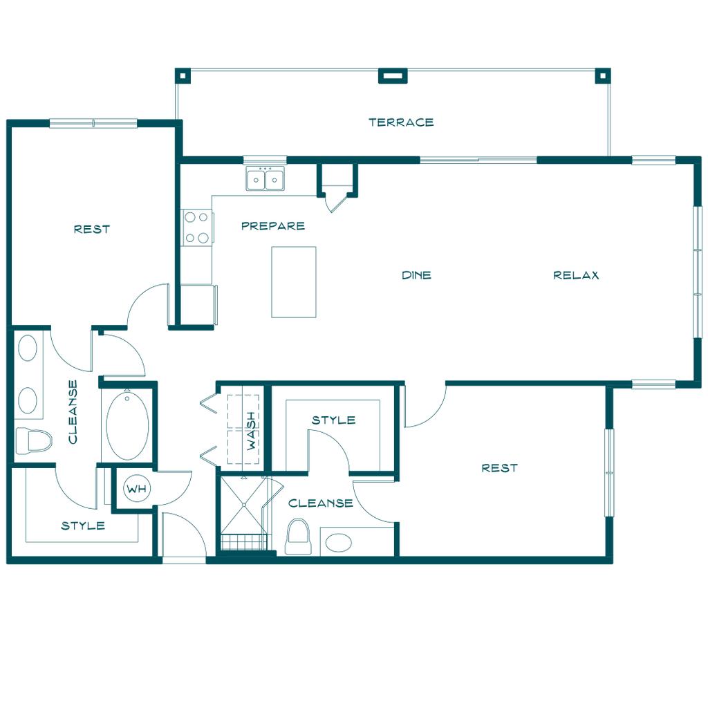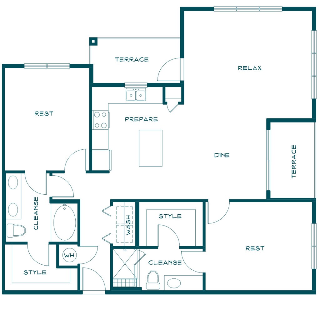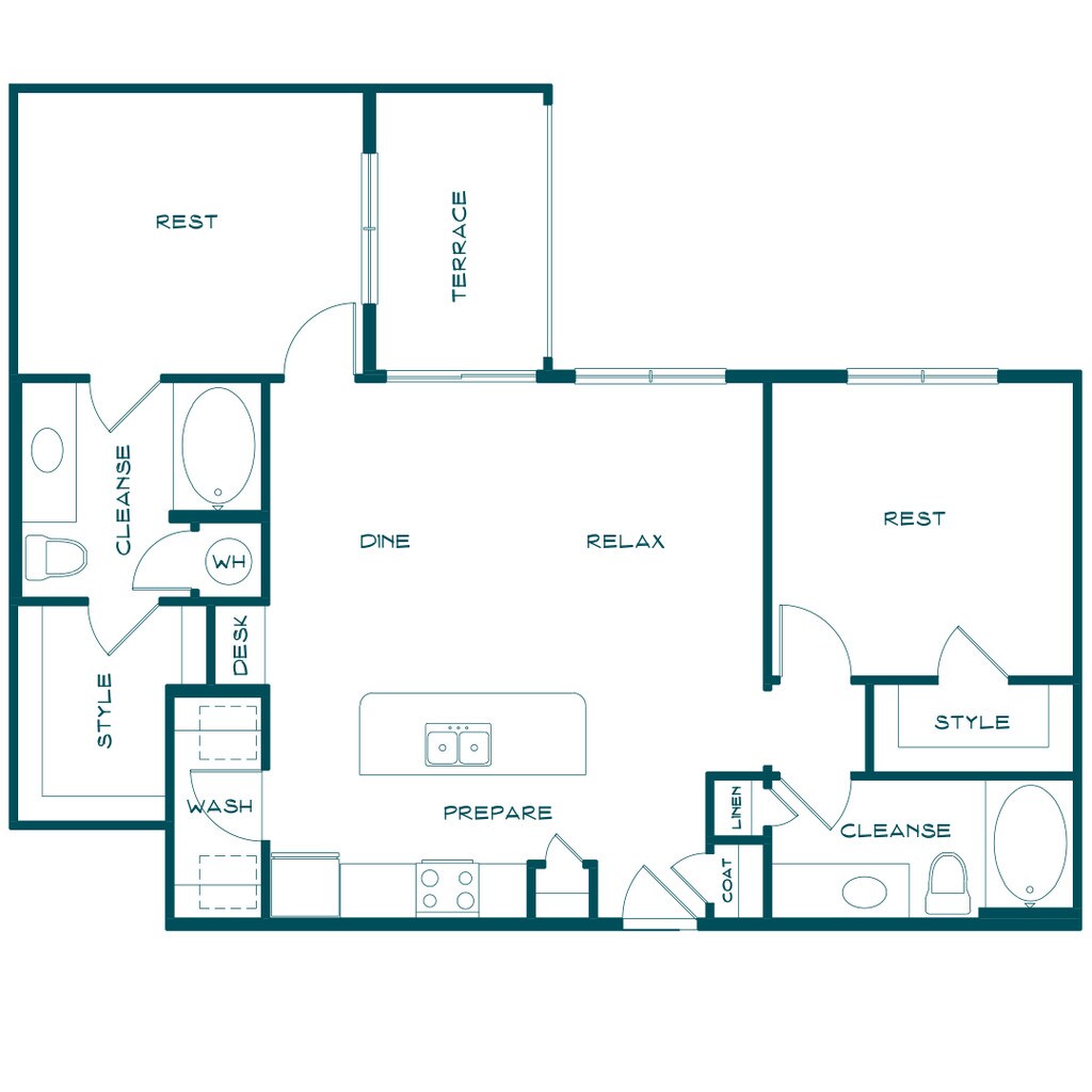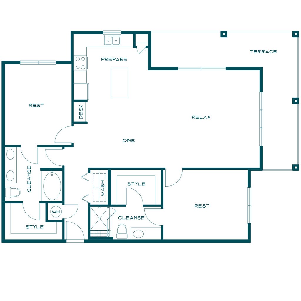 Modelo de apartamento: ADesde $1,2051 Dormitorio, 1 Baño, 655-670 sq ftDisponible Ahora![]()
