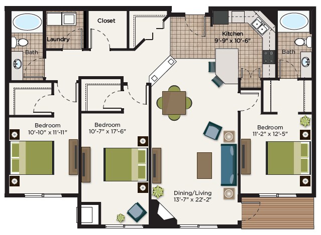 Modelo de apartamento: The MadisonDesde $1,3991 Dormitorio, 1 Baño, 789 sq ftDisponible Ahora![]()