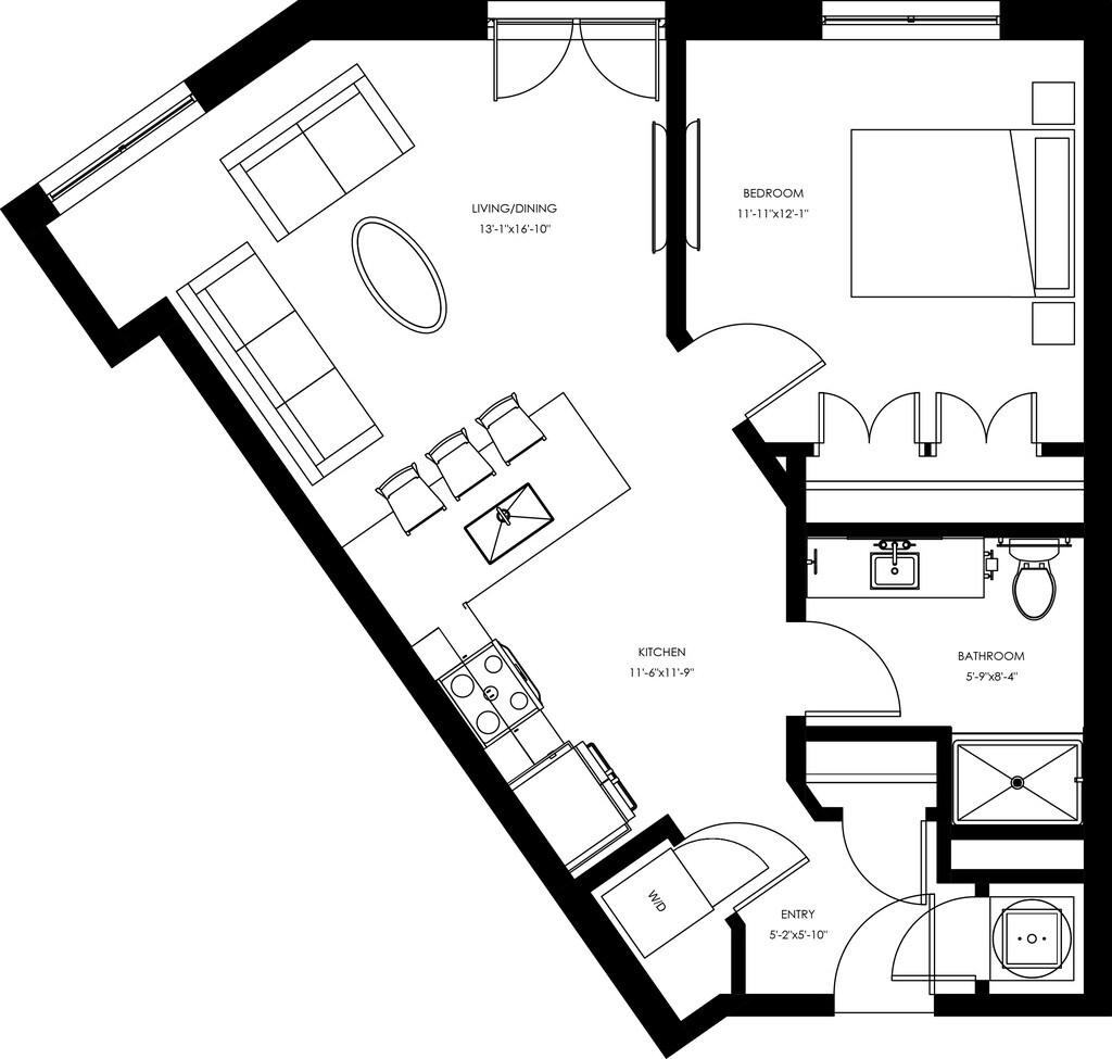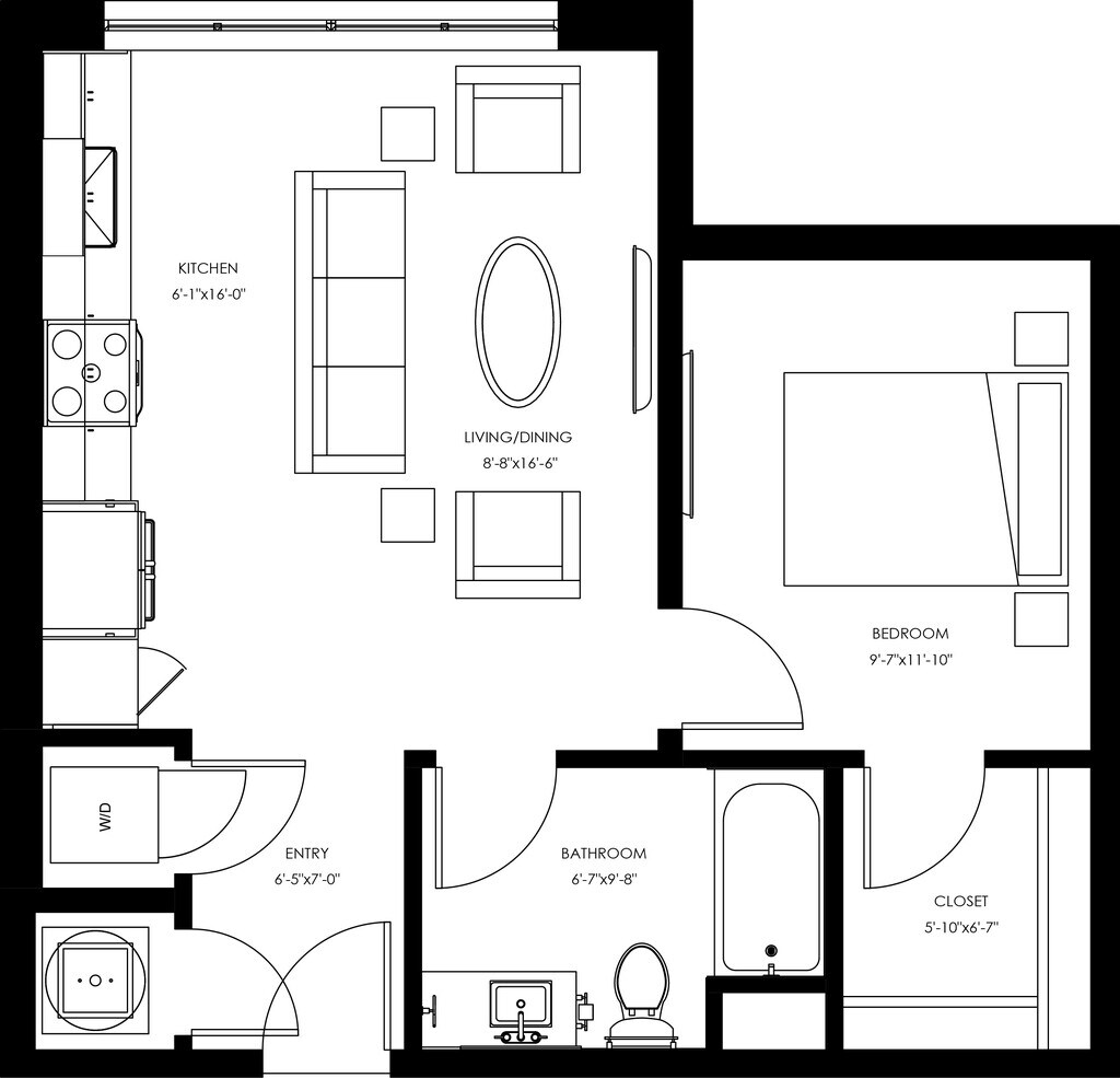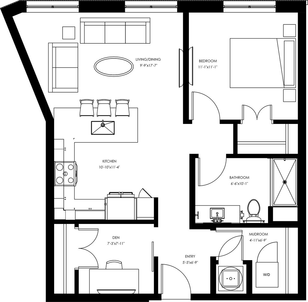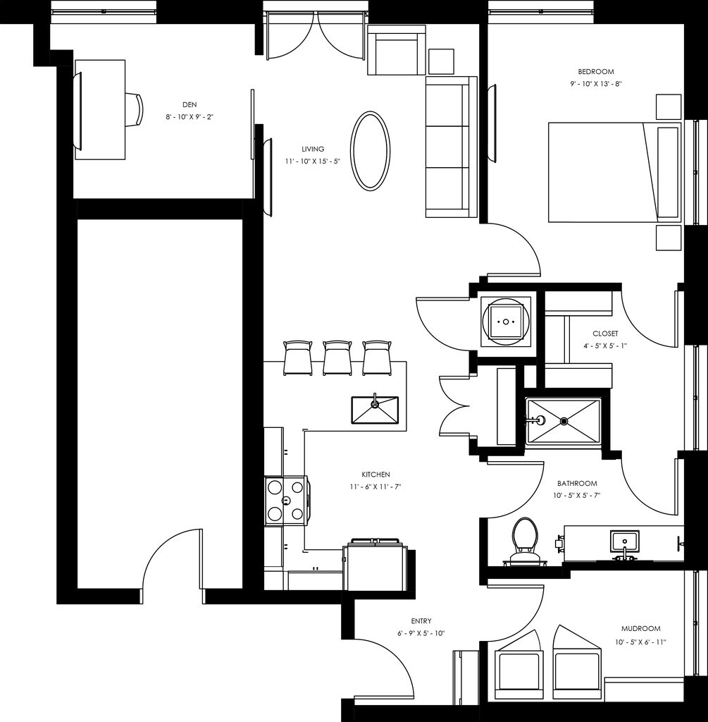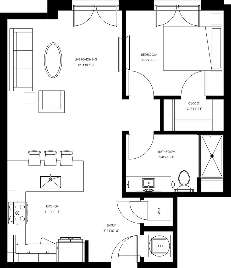 1 Dormitorio, 1 Baño, 568-714 pies²Disponible Apr 17Galería del Modelo
