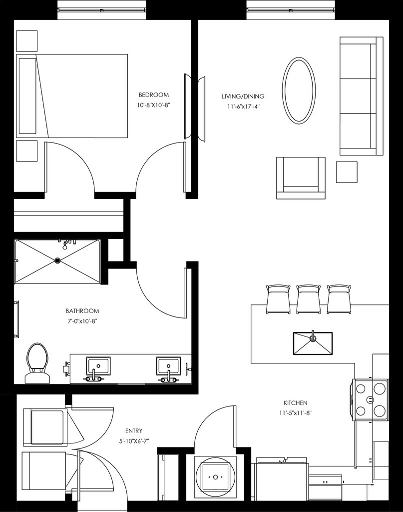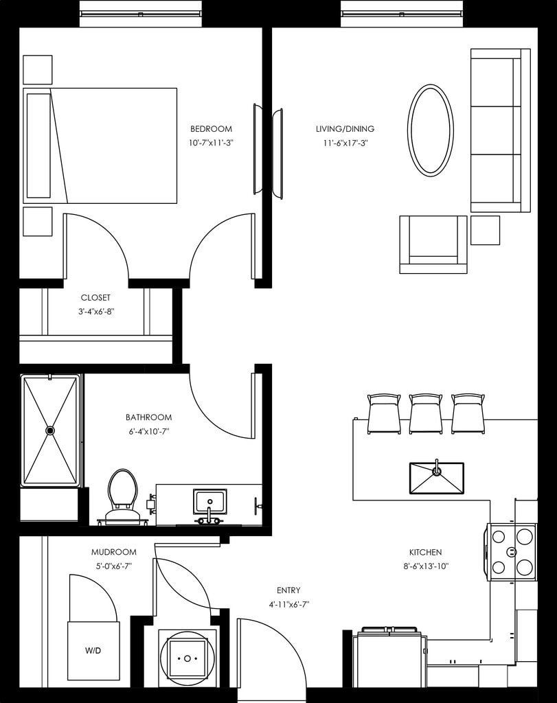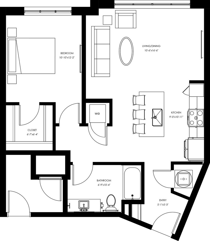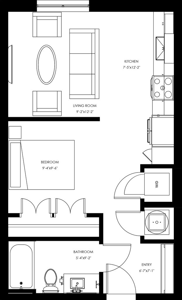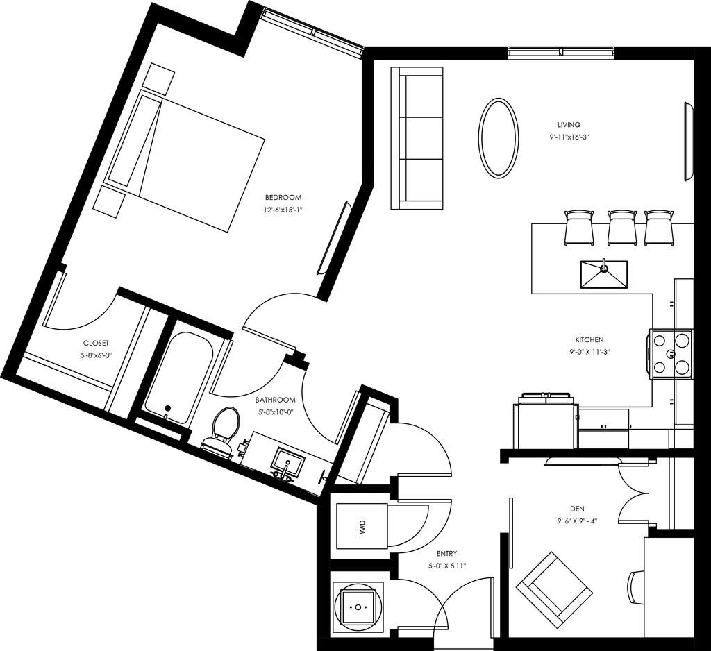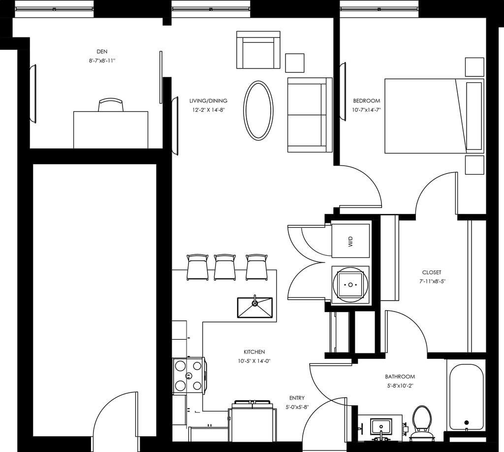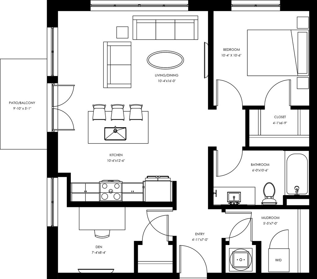 1 Dormitorio, 1 Baño, 568-714 pies²Disponible Apr 17Galería del Modelo