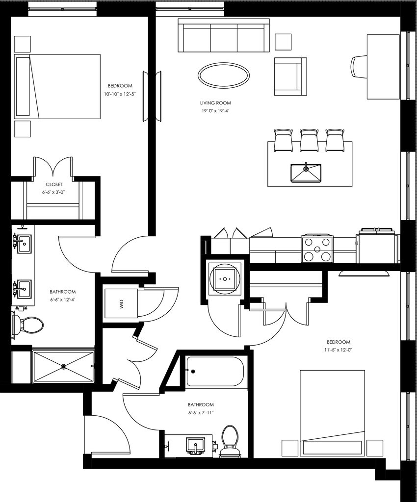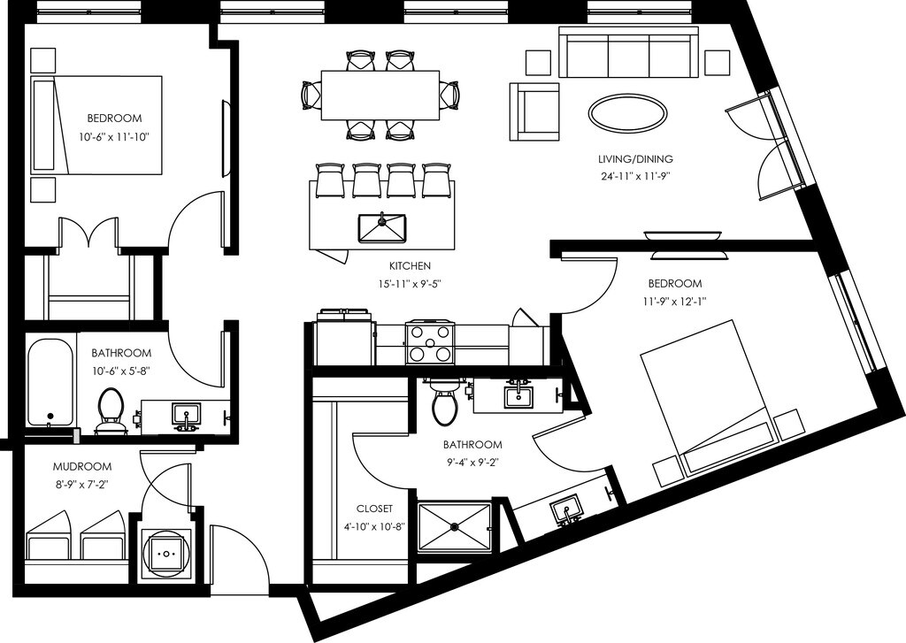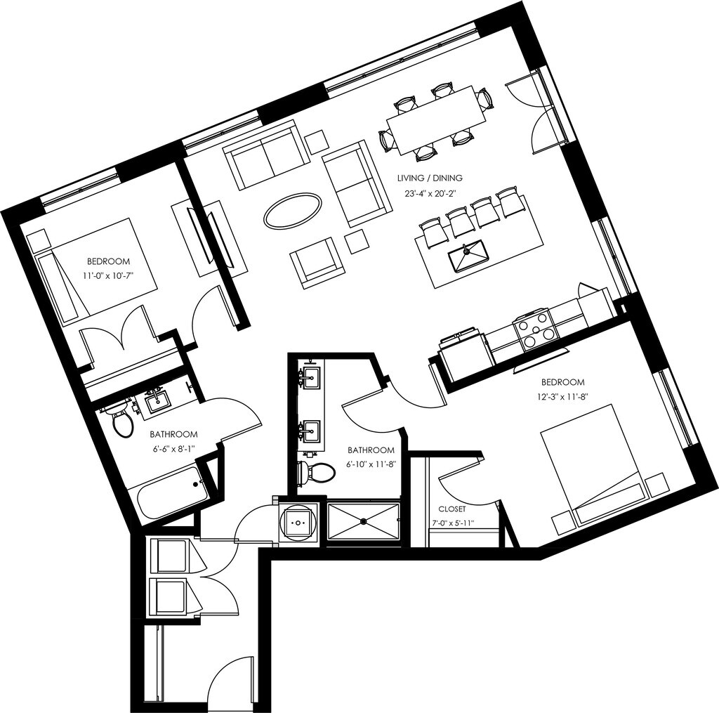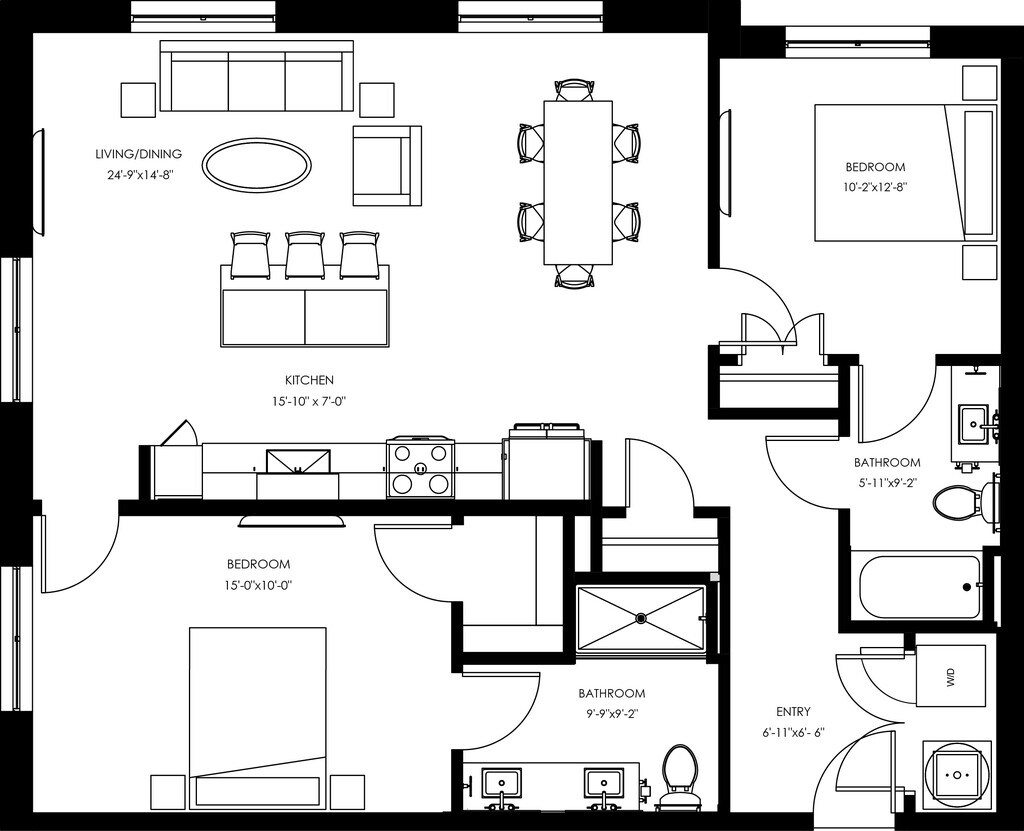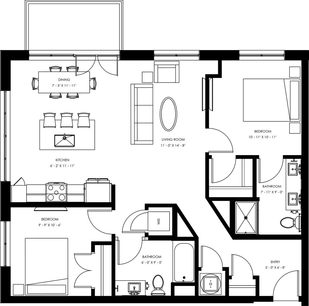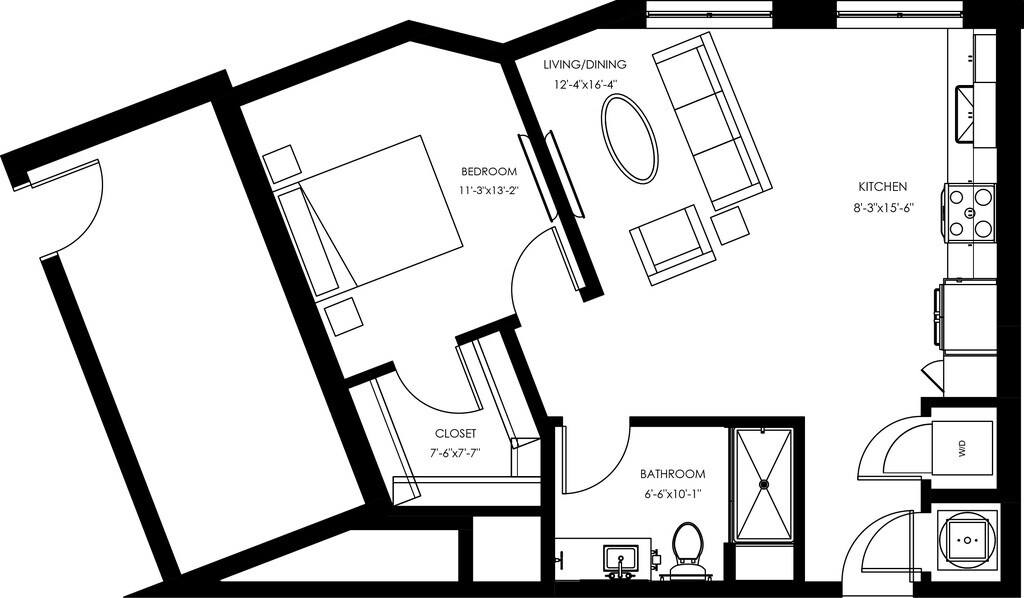 1 Dormitorio, 1 Baño, 568-714 pies²Disponible Apr 17Galería del Modelo
