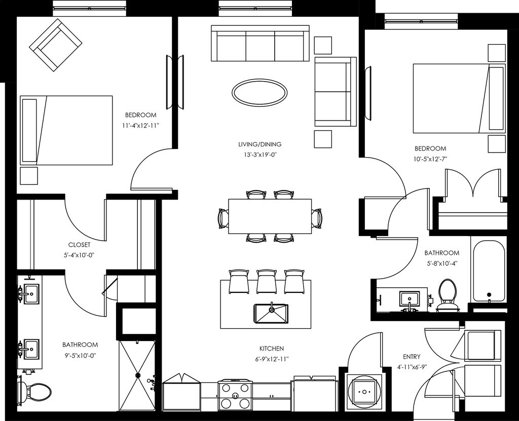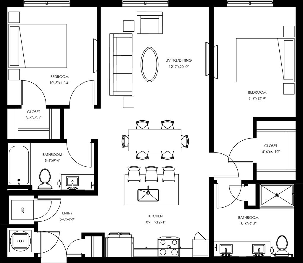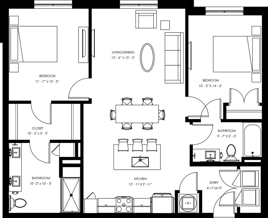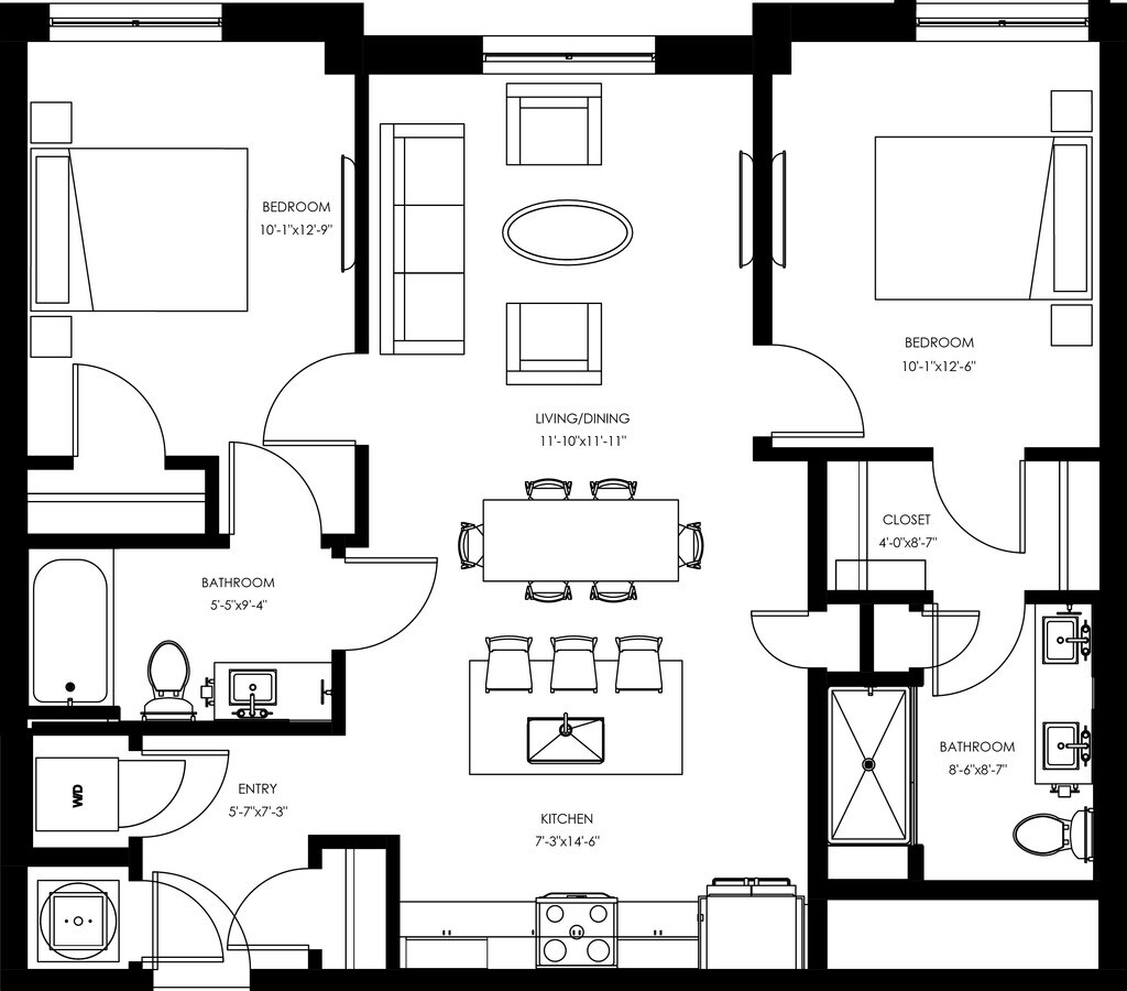Modelo de apartamento: A5 - One BedroomDesde $1,8551 Dormitorio, 1 Baño, 568 sq ftDisponible April 17, 2026![]()
