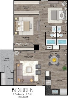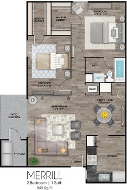 Modelo de apartamento: 2/1.002 Dormitorios, 1 Baño, 949 sq ftDisponible Ahora![]()