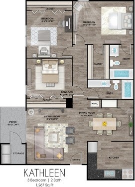 Modelo de apartamento: 3/2.003 Dormitorios, 2 Baños, 1267 sq ftDisponible Ahora![]()