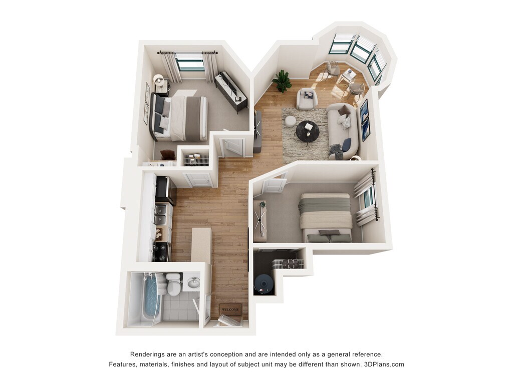 1 Dormitorio, 1 Baño, 855 pies²Disponible AhoraGalería del Modelo