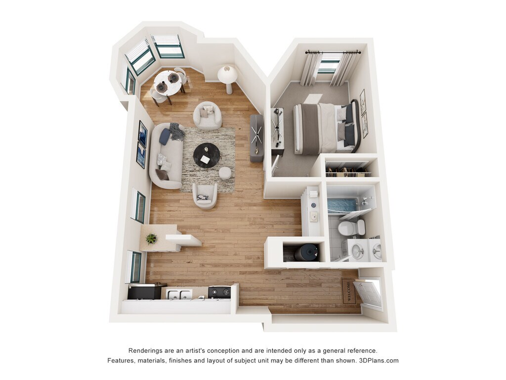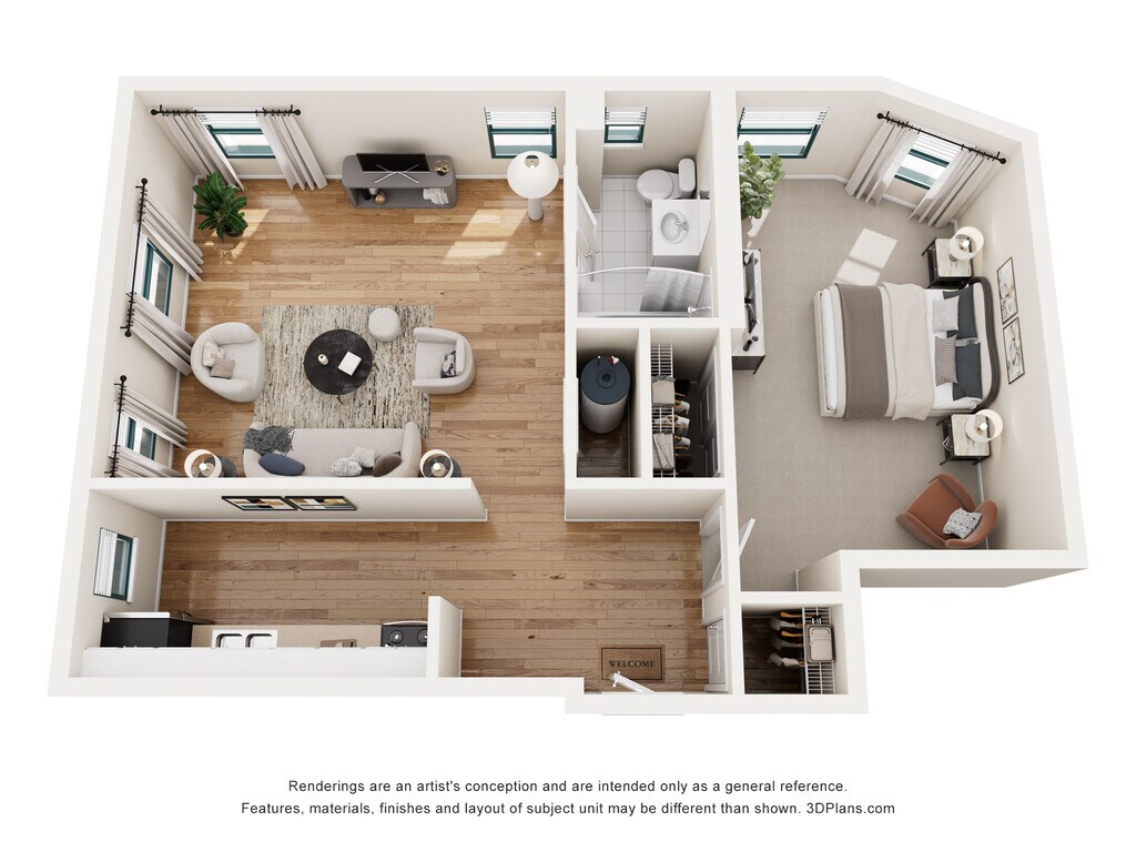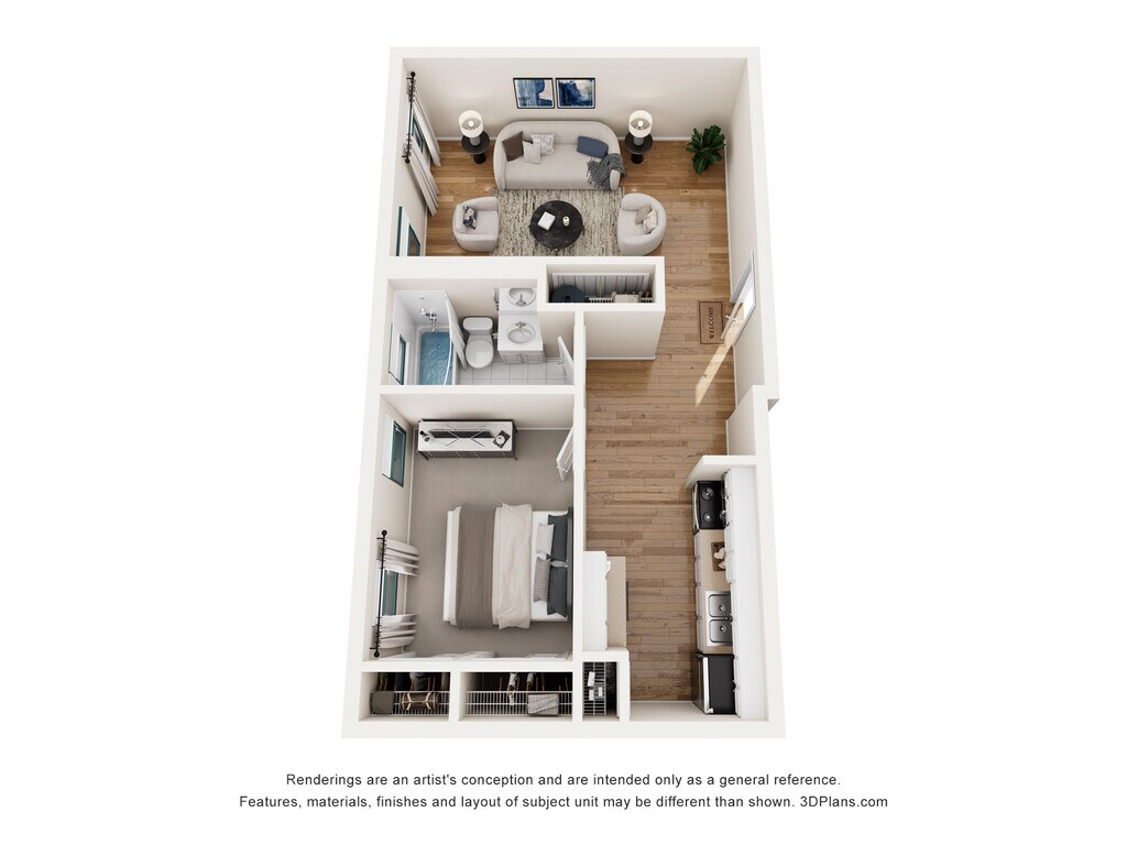 1 Dormitorio, 1 Baño, 550 pies²Disponible AhoraGalería del Modelo