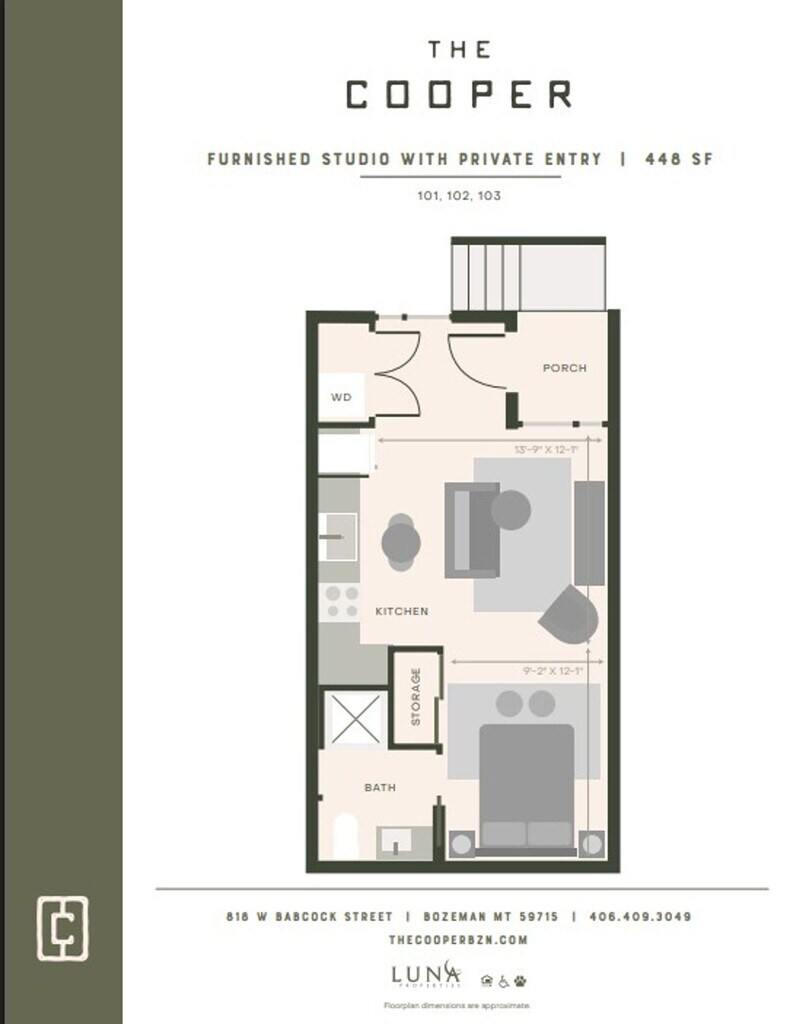 The Cooper Bozeman se encuentra en el código postal 59715 de Bozeman, MT. Esta comunidad está gestionada profesionalmente por Luna Properties