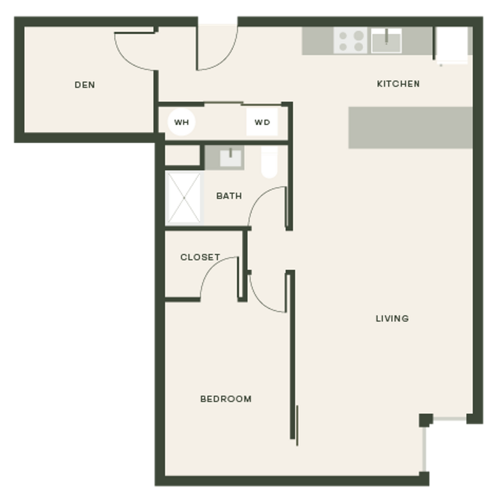1 Dormitorio, 1 Baño, 782 pies²Disponible AhoraGalería del Modelo
