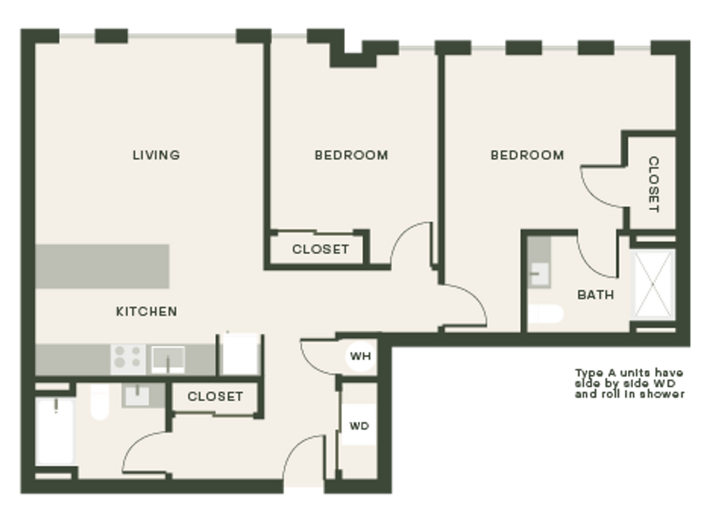 Modelo de apartamento: Type EDesde $1,6951 Dormitorio, 1 Baño, 772 sq ftDisponible Ahora![]()