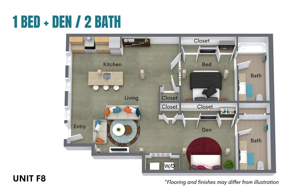 1 Dormitorio, 1 Baño, 720-916 pies²Disponible AhoraEl más grandeEsta opción tiene las unidades más grandes para este modeloGalería del Modelo