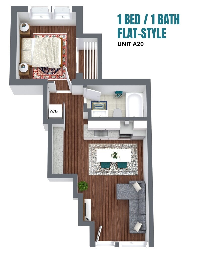 Modelo de apartamento: 1 Bedroom / 1 Bathroom: FlatDesde $1,0251 Dormitorio, 1 Baño, 551-579 sq ftDisponible Ahora![]()