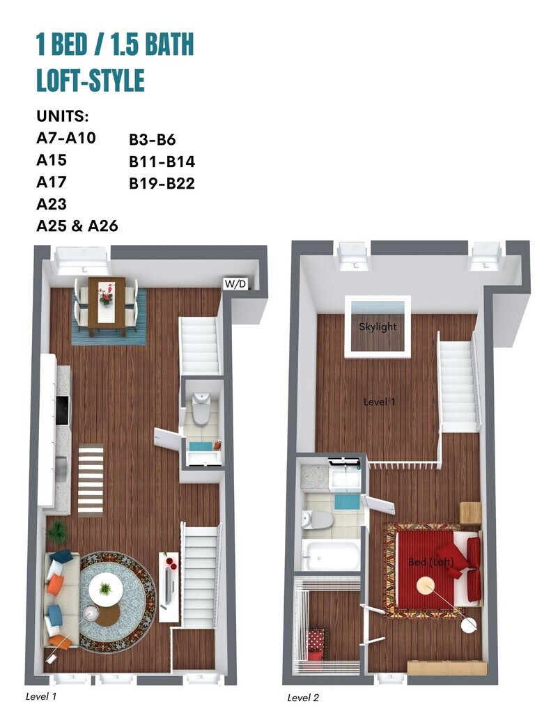 1 Bedroom / 1 Bath: Townhome Style - Plano 2 Unidad de apartamento: H9Modelo de apartamento: 1 Bedroom / 1 Bath: Townhome Style$1,1251 Dormitorio, 1 Baño, 730 sq ftDisponible AhoraUnidad de apartamento: E10Modelo de apartamento: 1 Bedroom / 1 Bath: Townhome Style$1,1251 Dormitorio, 1 Baño, 730 sq ftDisponible February 28, 20261 Bedroom / 1 Bathroom: Loft