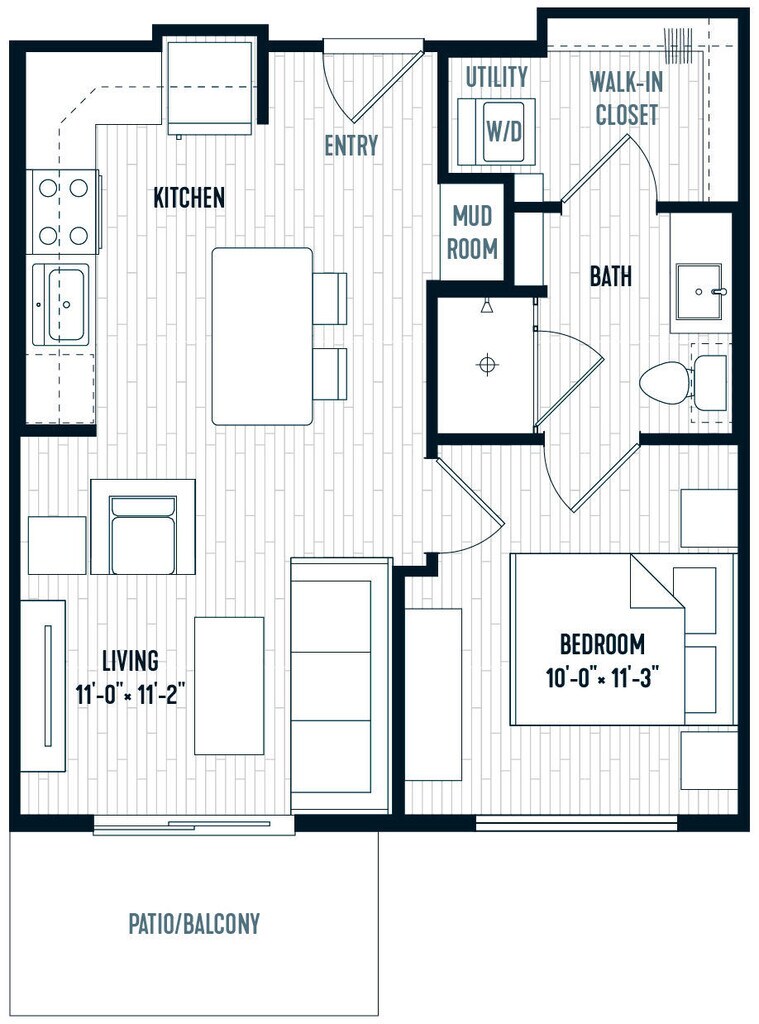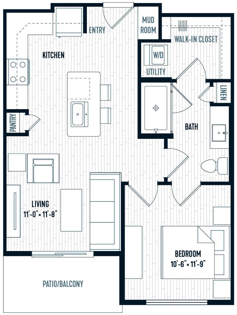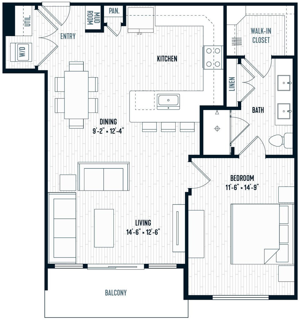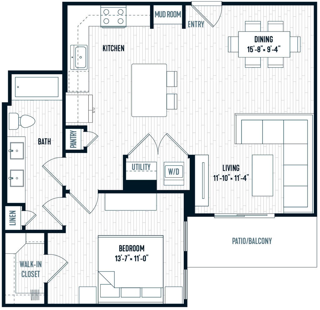 1 Dormitorio, 1 Baño, 792 pies²Disponible AhoraGalería del Modelo