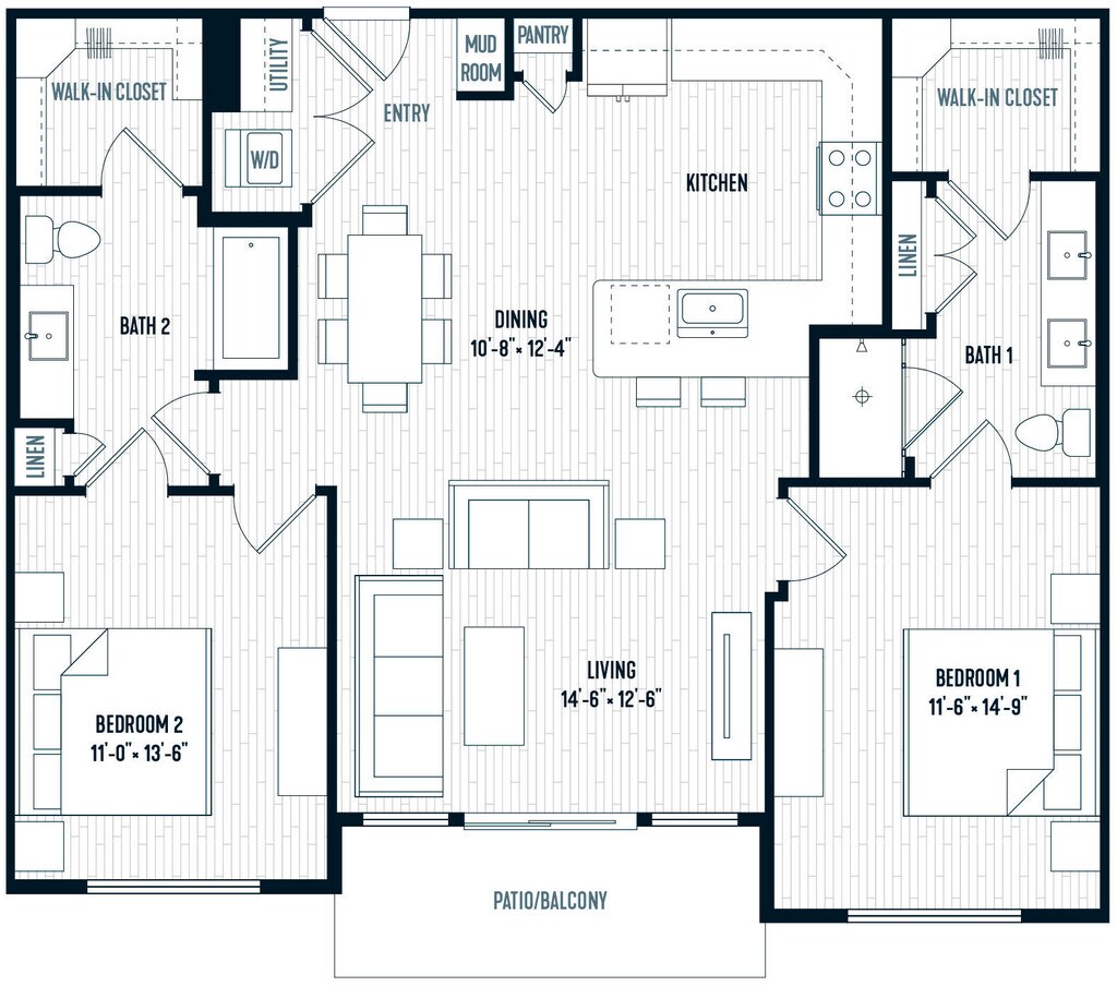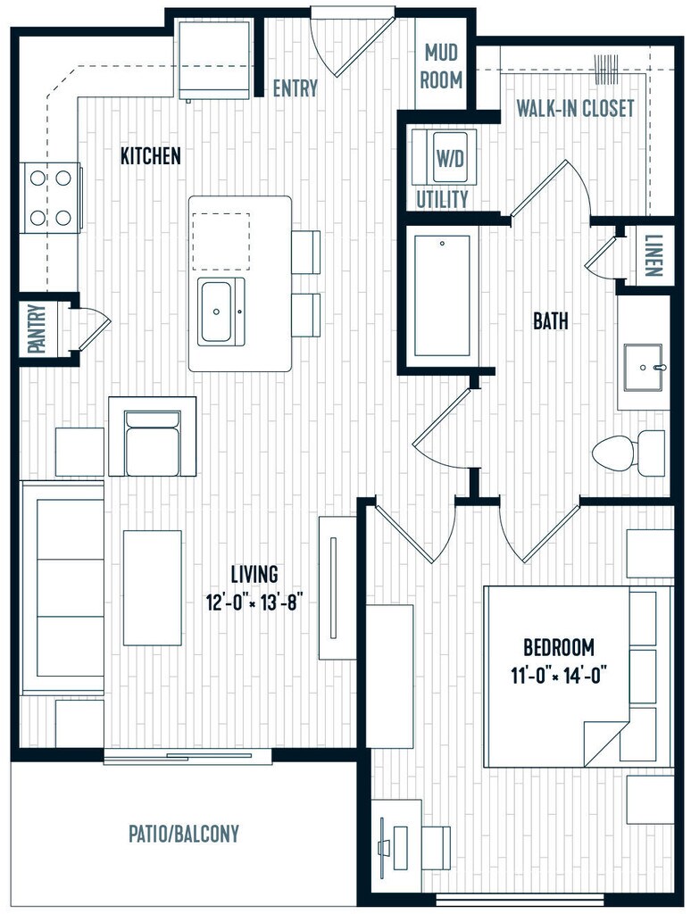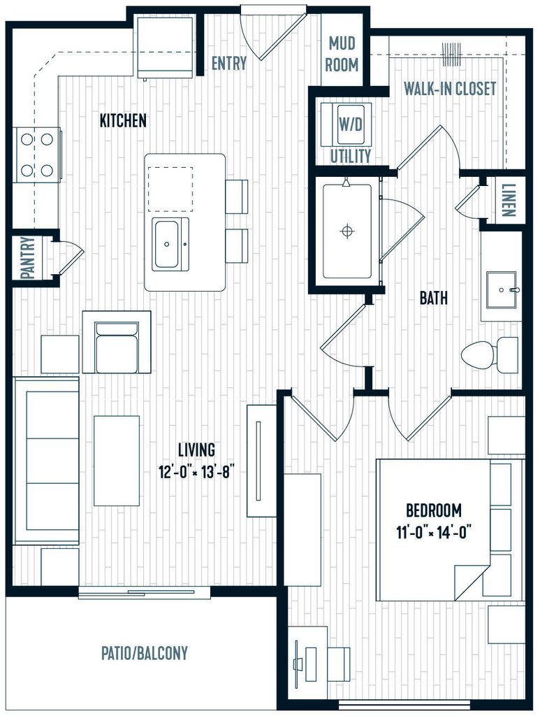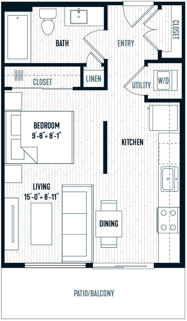 1 Dormitorio, 1 Baño, 792 pies²Disponible AhoraGalería del Modelo