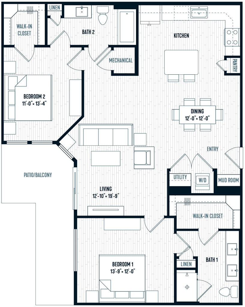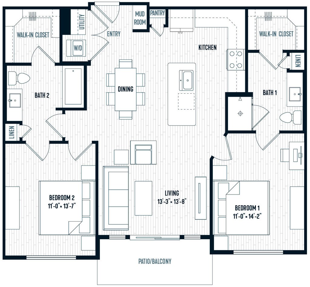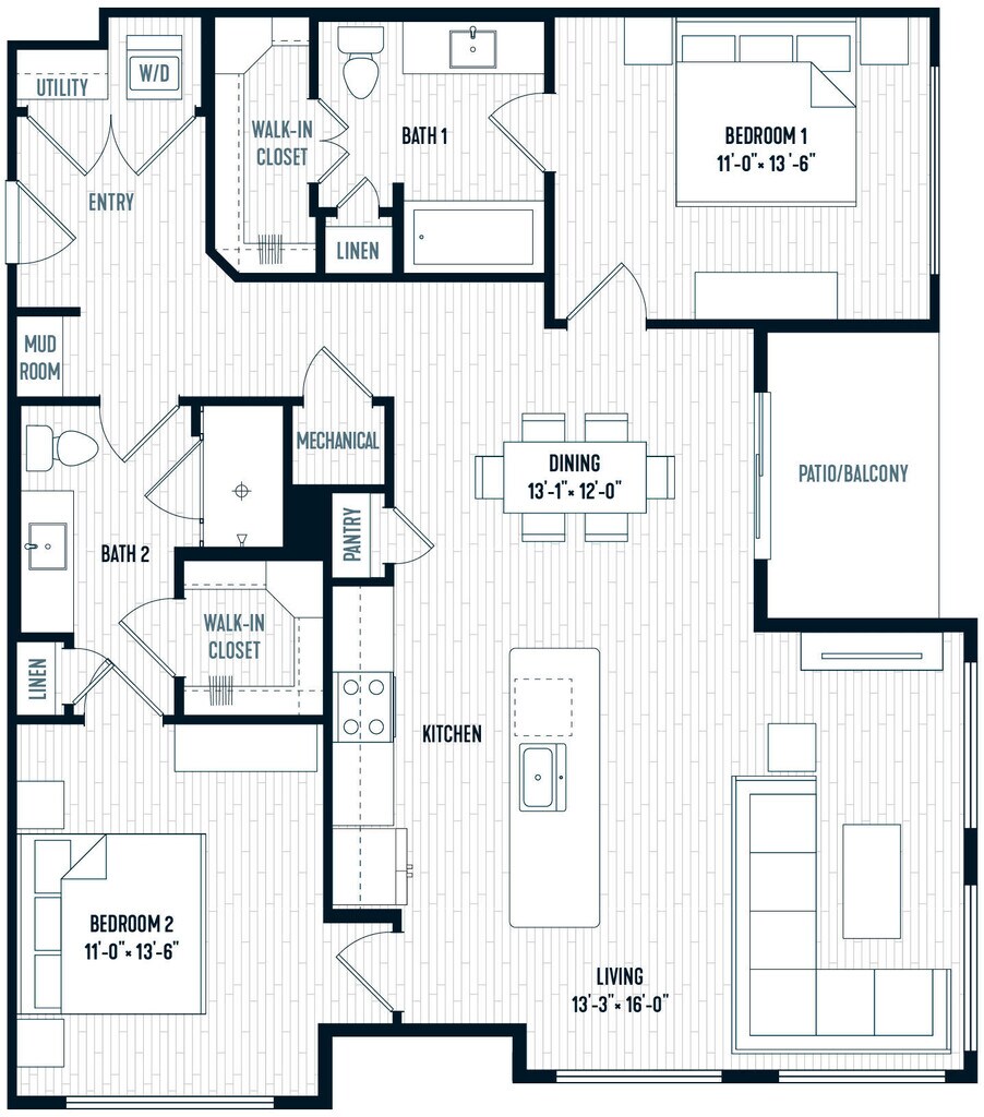 Modelo de apartamento: A2 One BedroomDesde $1,6031 Dormitorio, 1 Baño, 693 sq ftDisponible Ahora![]()