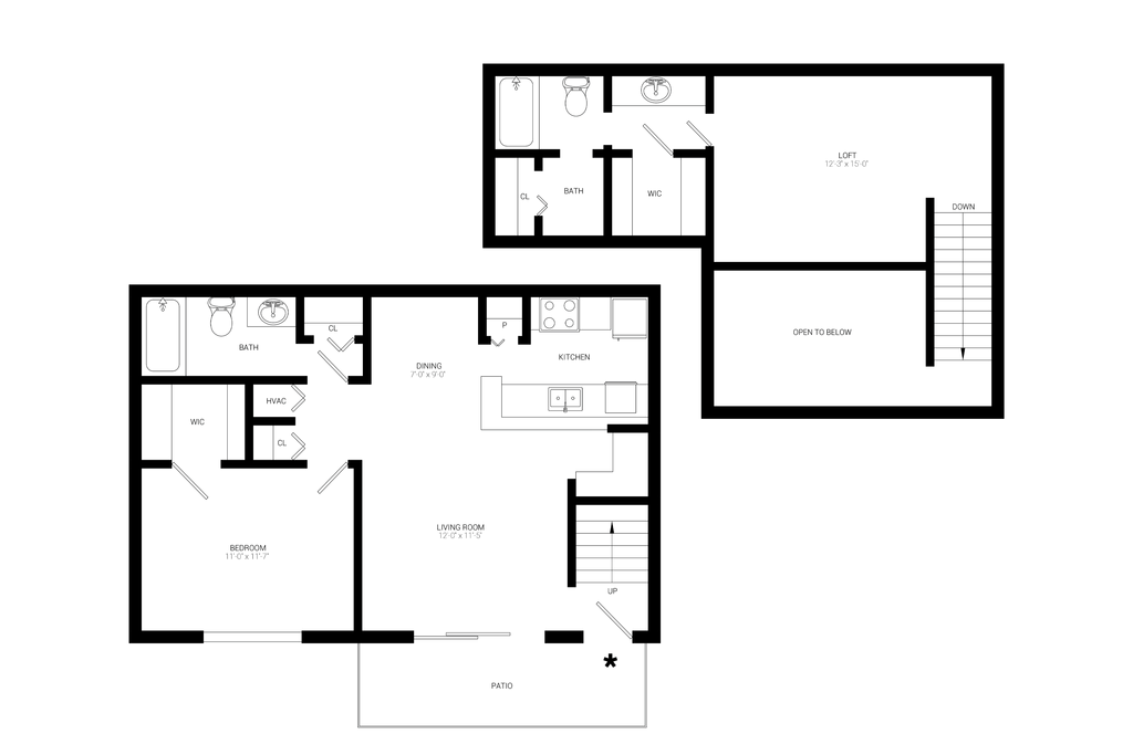 1 Dormitorio, 1 Baño, 600-615 pies²Disponible AhoraGalería del Modelo