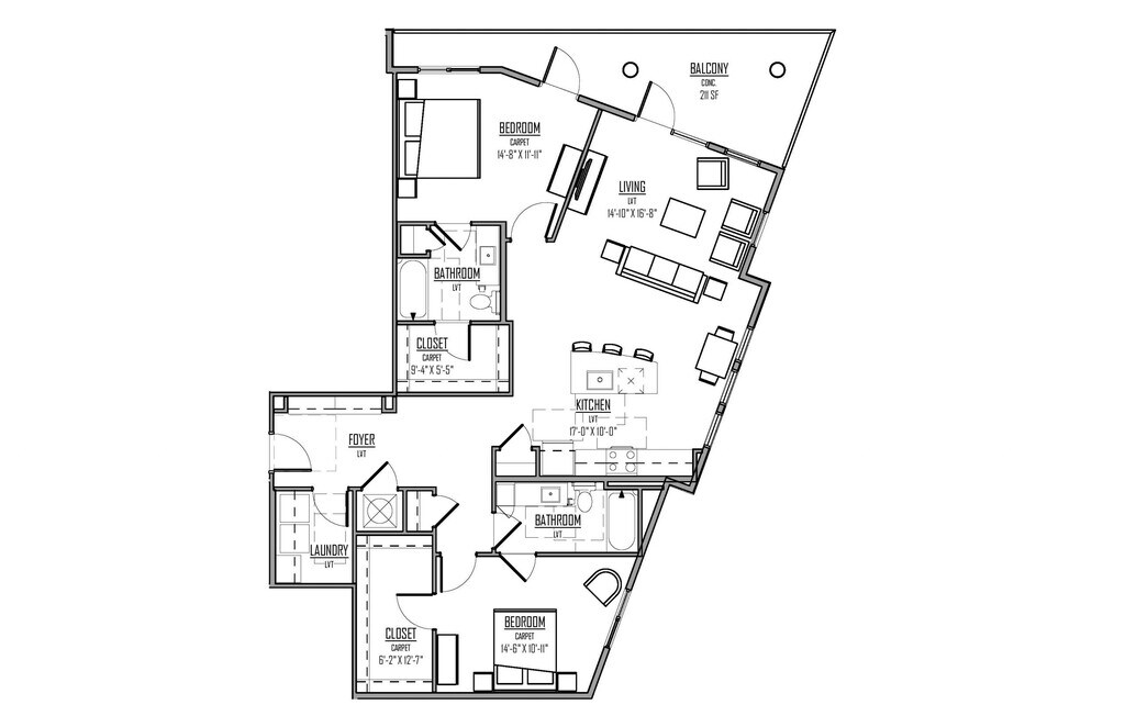 Modelo de apartamento: Unit E – 2 Bed/2 Bath$2,0002 Dormitorios, 2 Baños, 1356 sq ftDisponible November 5, 2025Unit E – 2 Bed/2 Bath - Plano 1 $2,000