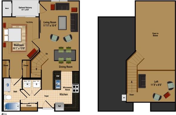 1 Dormitorio, 1 Baño, 801 pies²Disponible AhoraGalería del Modelo