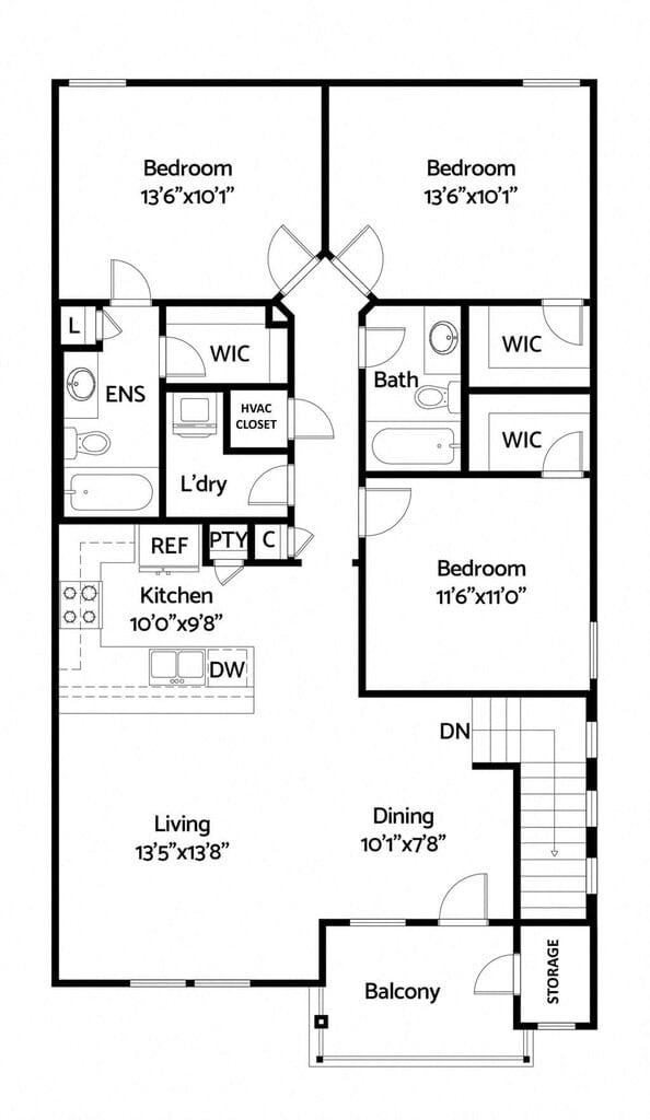 Modelo de apartamento: A3Llame para Precios1 Dormitorio, 1 Baño, 851 sq ftNo Disponible![]()