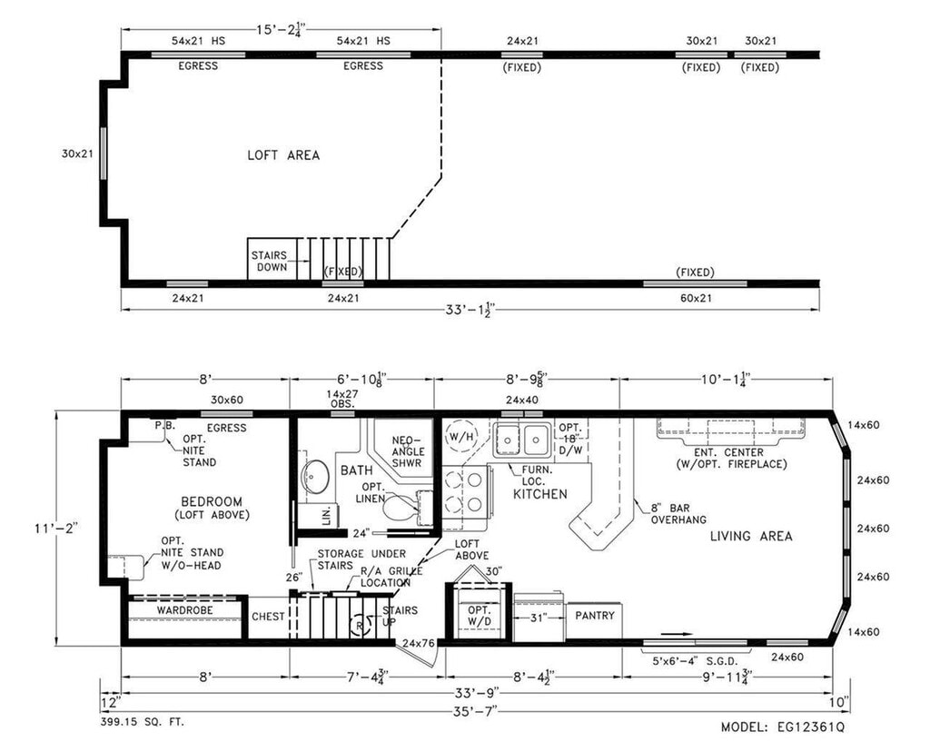 1 Dormitorio, 1 Baño, 399 pies²Galería del Modelo