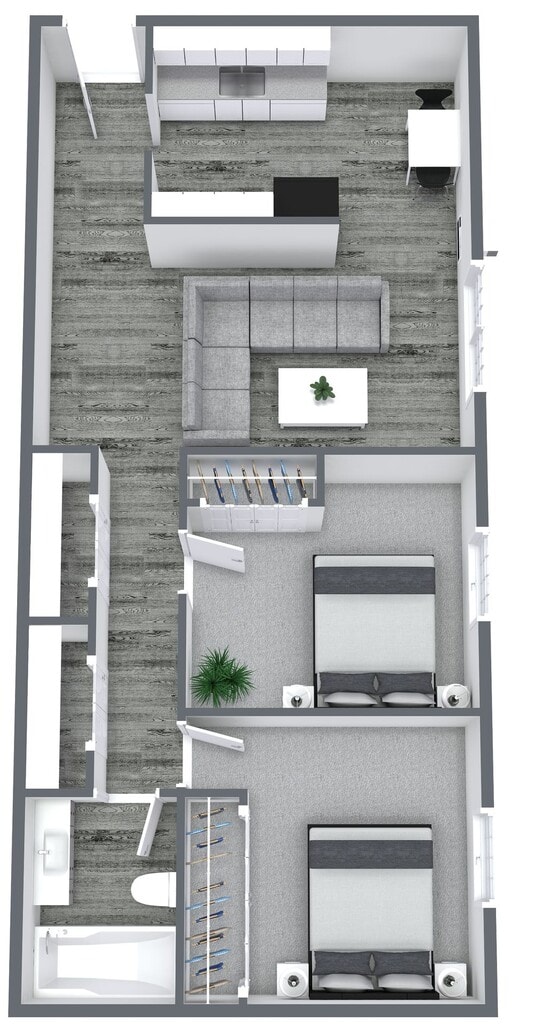 2 Dormitorios, 1 Baño, 780 pies²Disponible AhoraGalería del Modelo