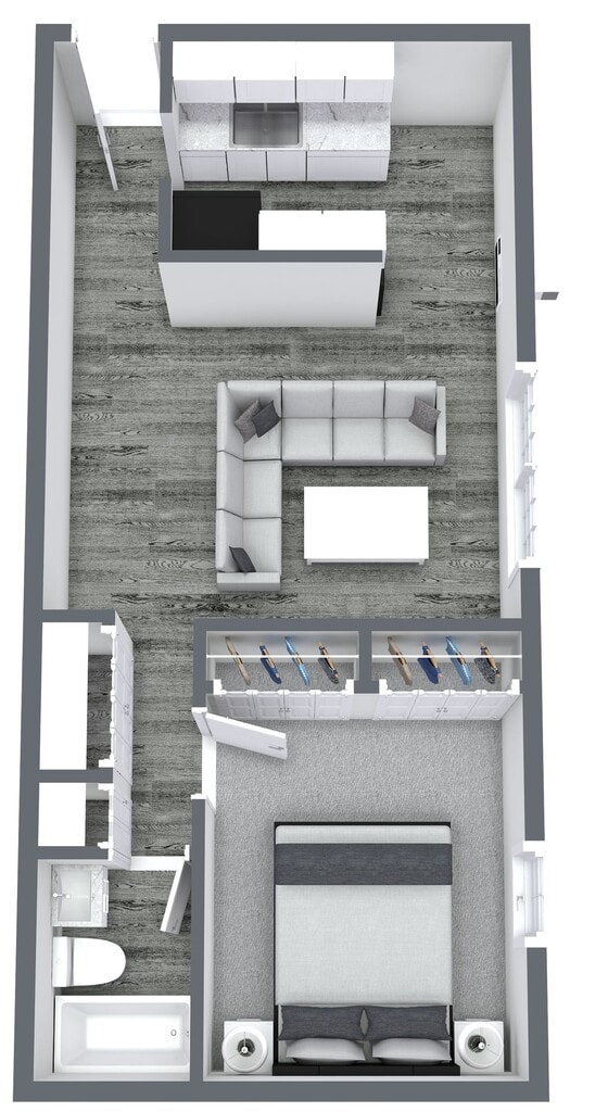1 Dormitorio, 1 Baño, 573 pies²Disponible AhoraGalería del Modelo