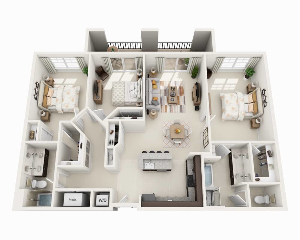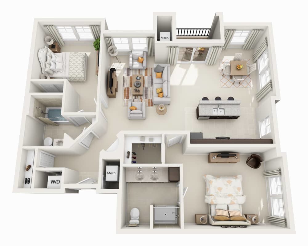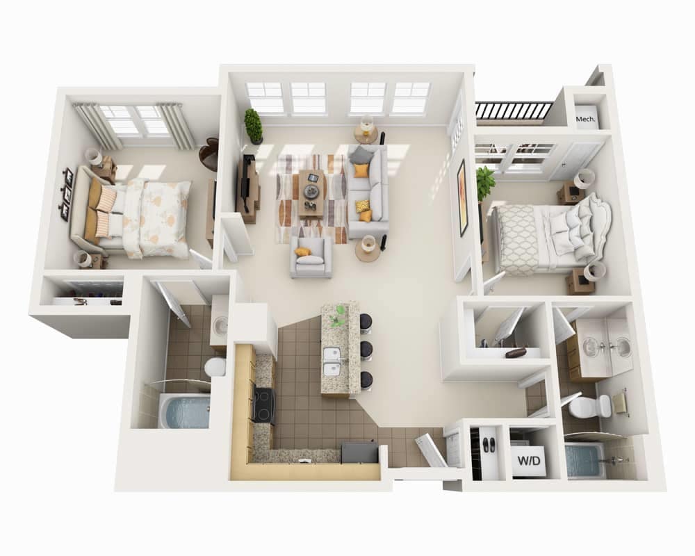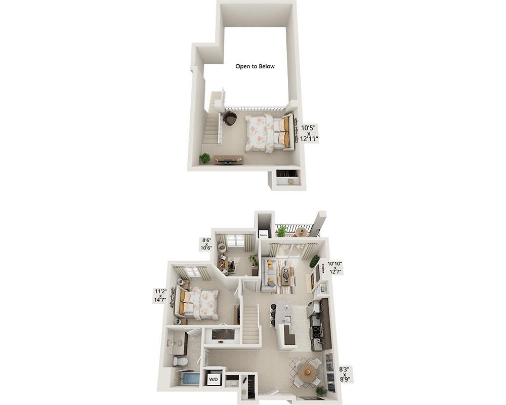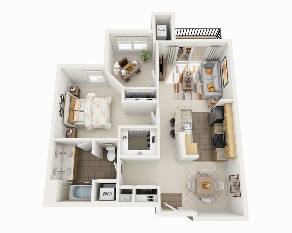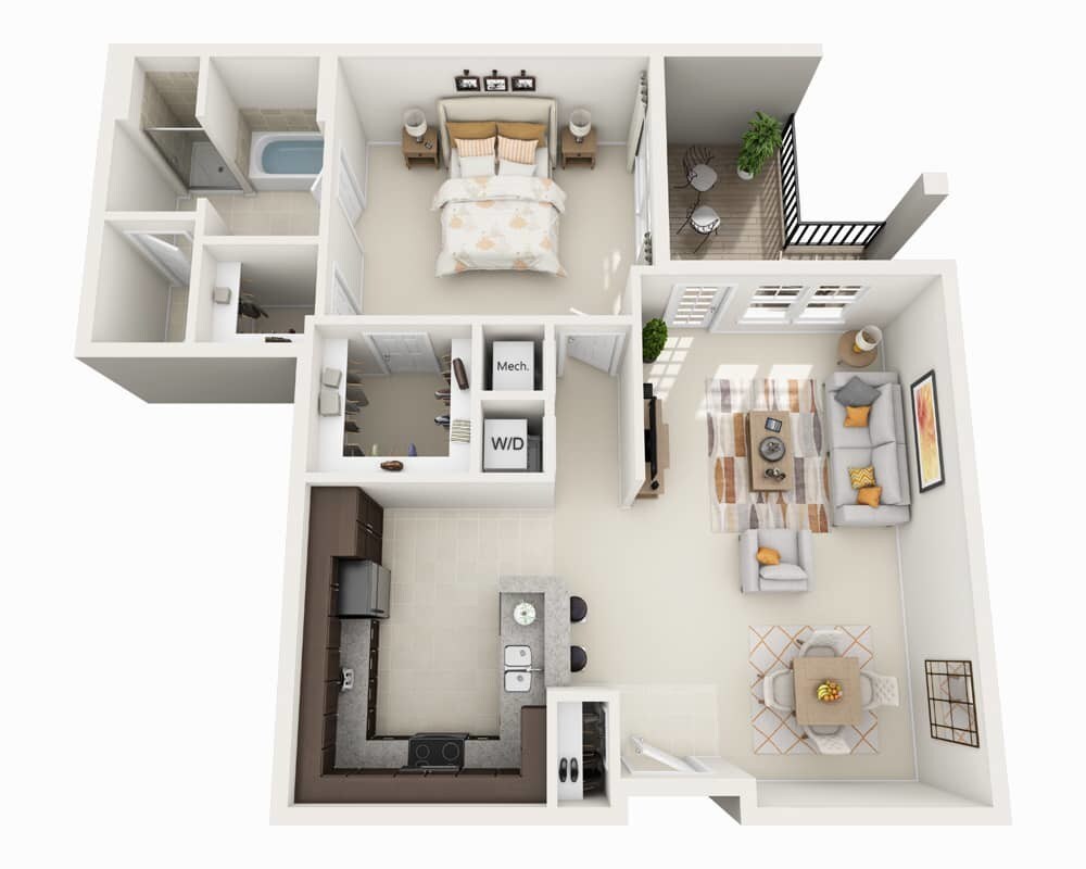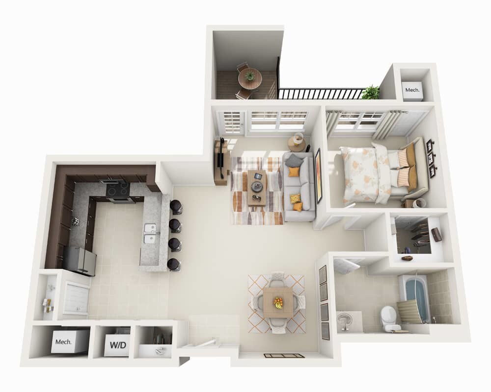 1 Dormitorio, 1 Baño, 820 pies²Disponible AhoraGalería del Modelo