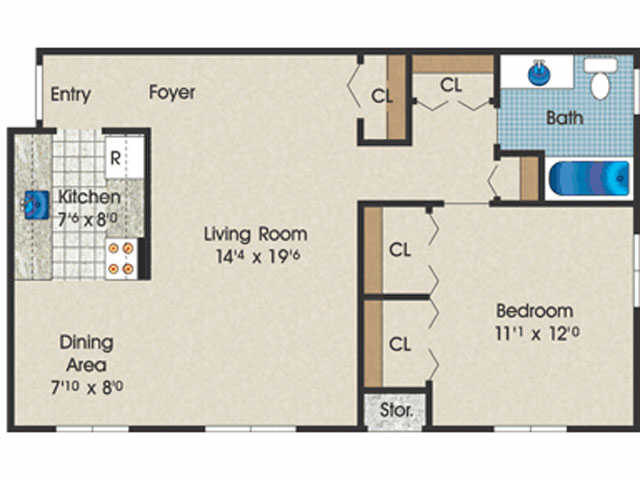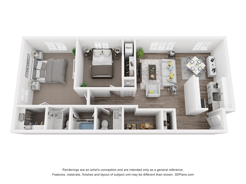 1 Dormitorio, 1 Baño, 650 pies²Disponible AhoraGalería del Modelo