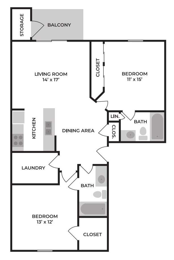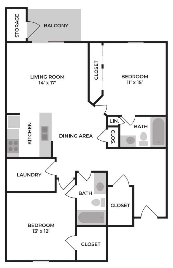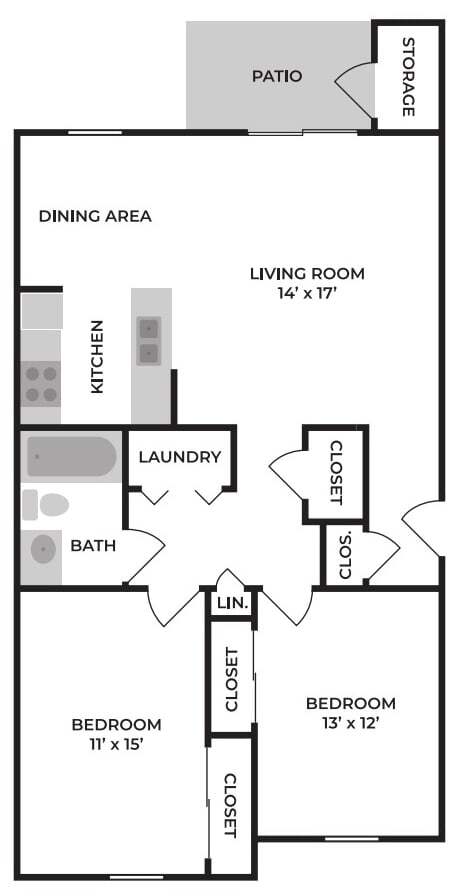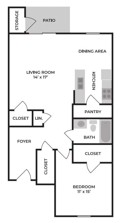 Modelo de apartamento: The CottageDesde $1,1411 Dormitorio, 1 Baño, 725 sq ftDisponible Ahora![]()