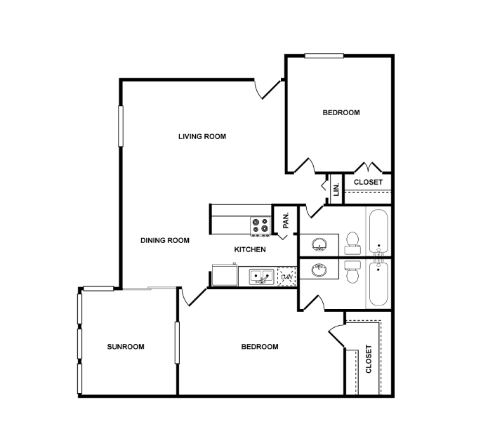 Modelo de apartamento: B1Desde $1,3052 Dormitorios, 2 Baños, 938 sq ftDisponible Ahora![]()