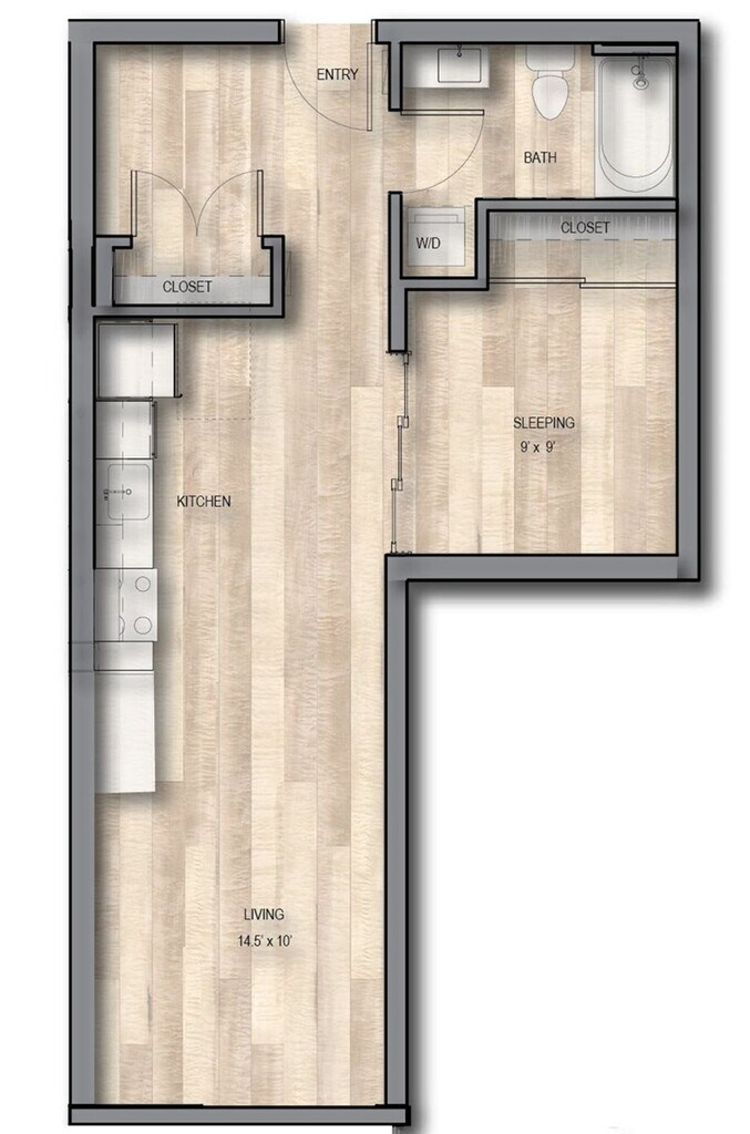 1 Dormitorio, 1 Baño, 509 pies²Disponible AhoraGalería del Modelo
