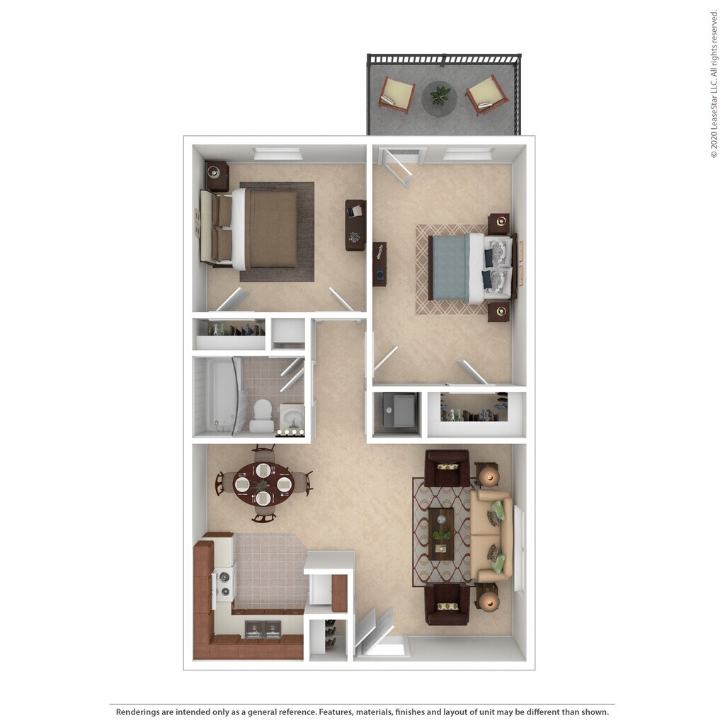 2 Dormitorios, 1 Baño, 750 pies²Disponible AhoraGalería del Modelo