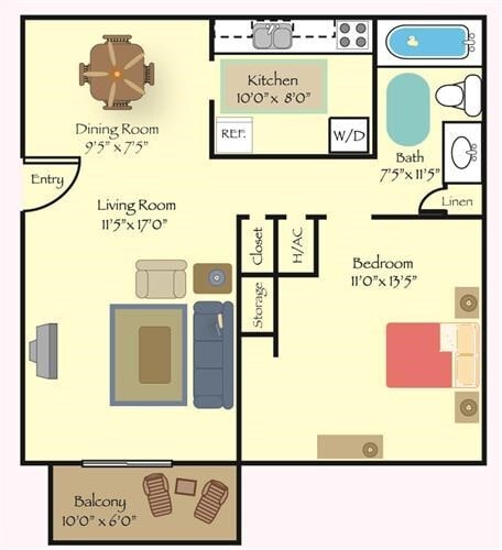 Modelo de apartamento: The WillowDesde $1,1192 Dormitorios, 1.5 Baños, 884 sq ftDisponible Ahora![]()