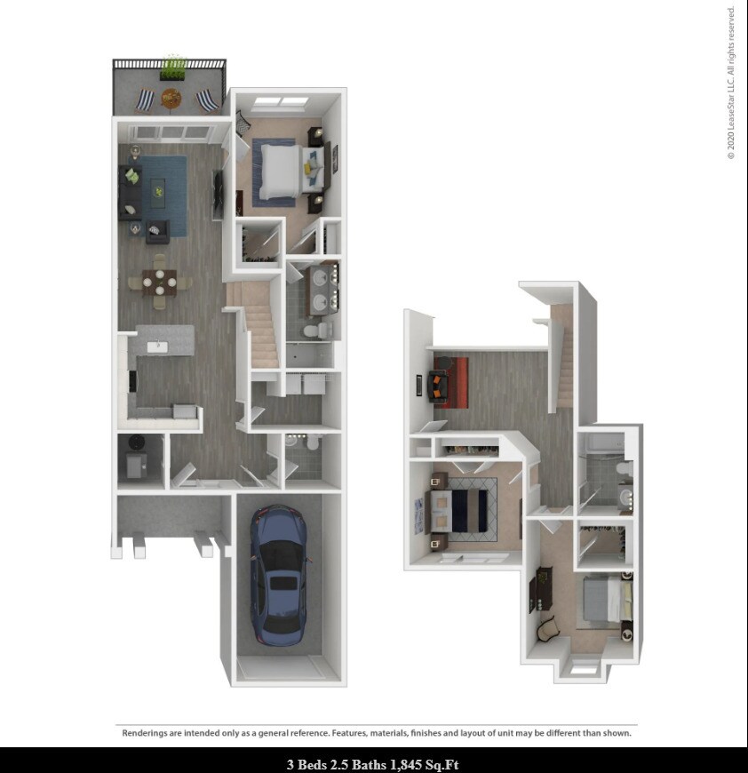 3 Dormitorios, 2.5 Baños, 1845 pies²Precio Mensual TotalDisponible Nov 1Galería del Modelo