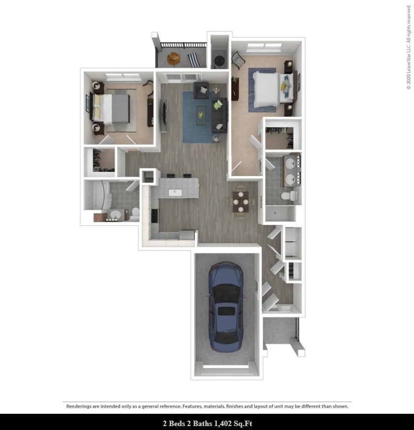 2 Dormitorios, 2 Baños, 1402 pies²Precio Mensual TotalDisponible Nov 1Galería del Modelo