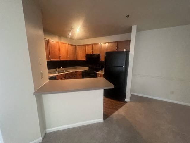 - Gabinetes estilo espresso con electrodomésticos de color negro